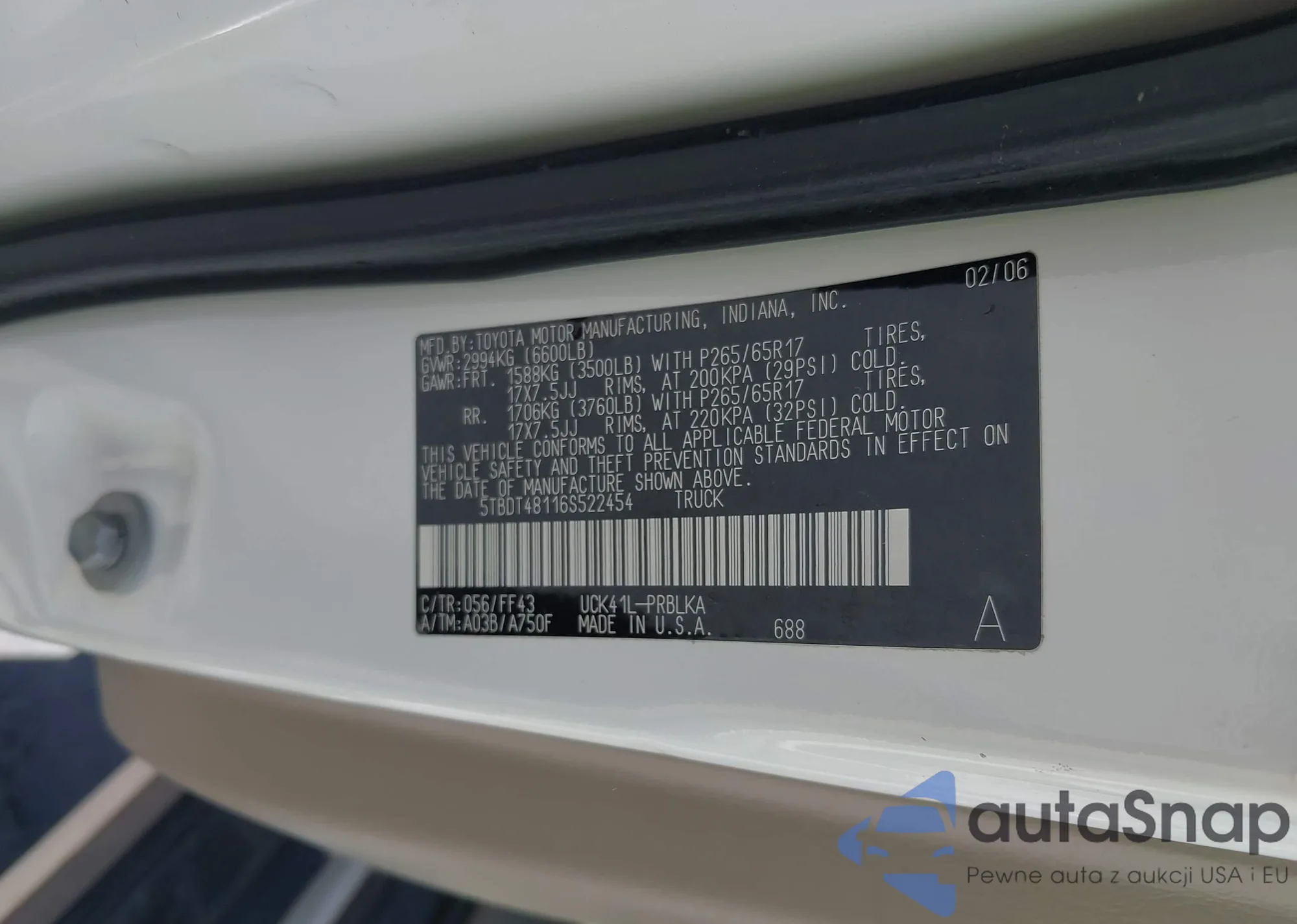 LOT: 42910098 VIN: 5TBDT48116S522454