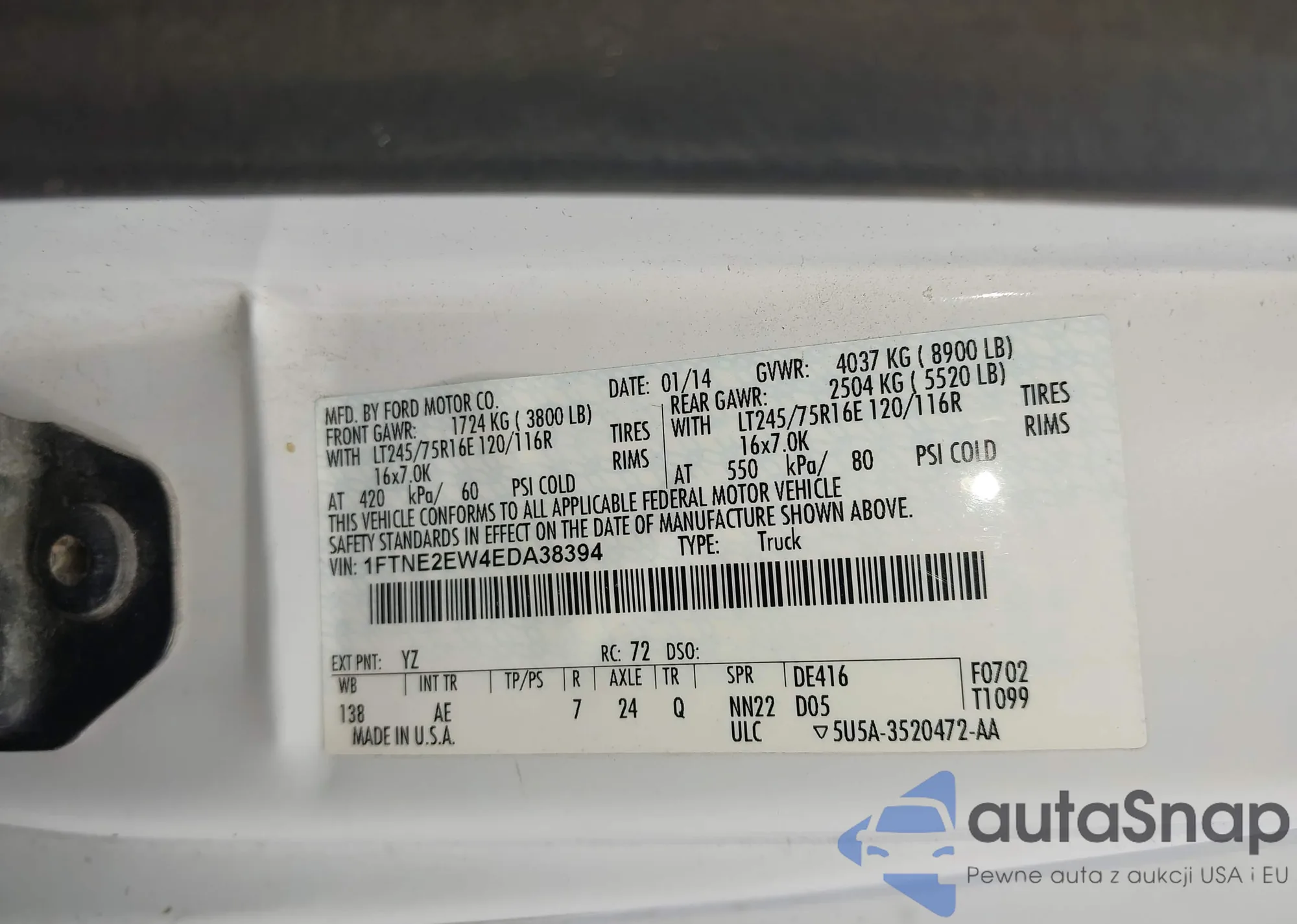 • VIN 1FTNE2EW4EZA38394
