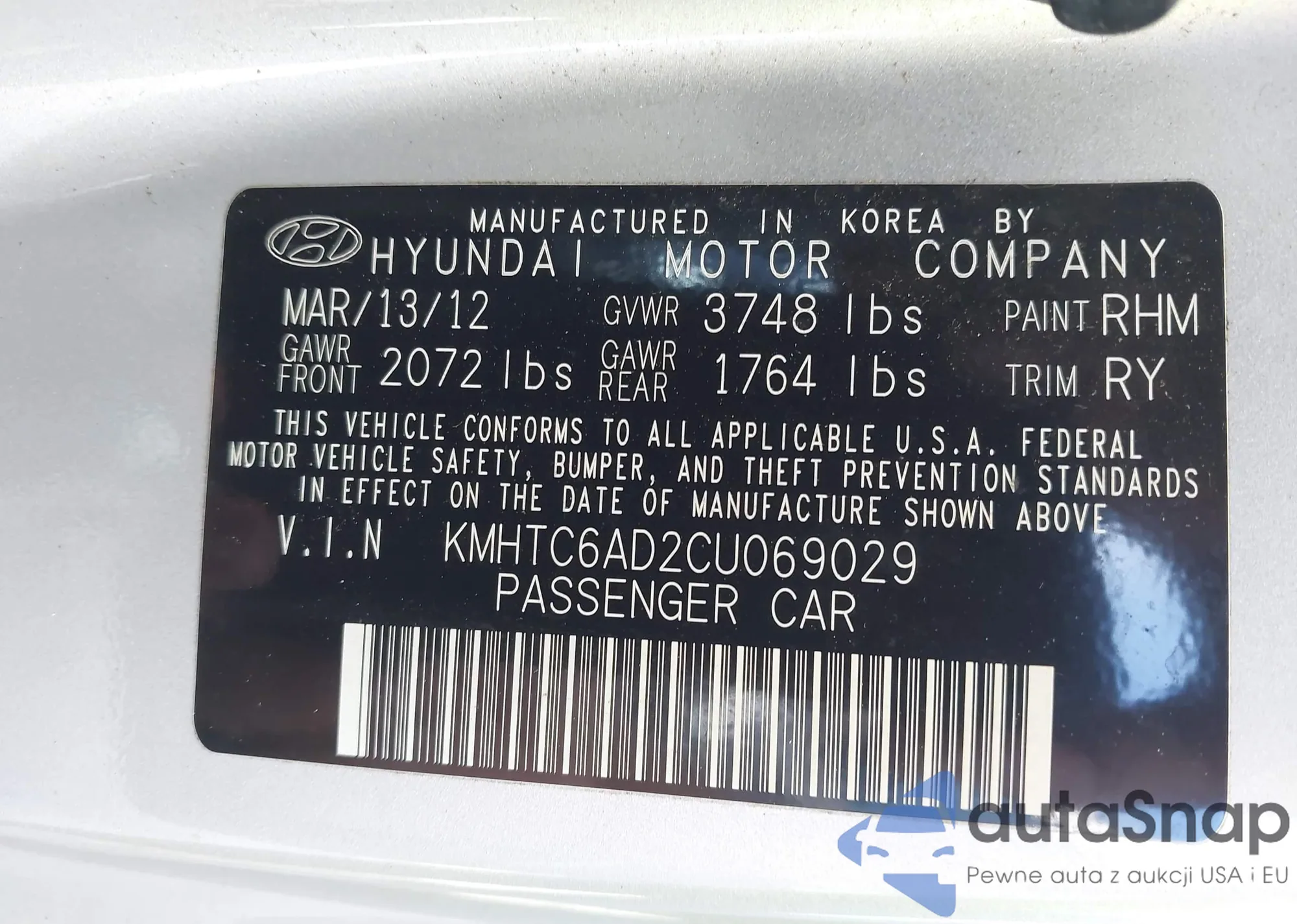 LOT: 42155456 VIN: 1HGCM72795A011845