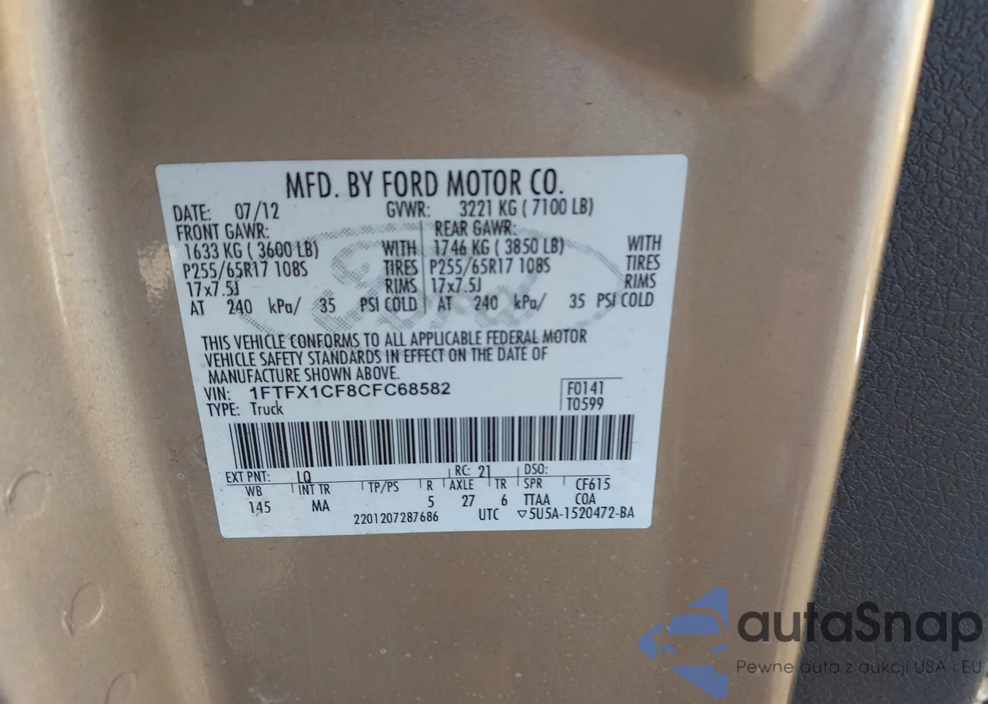 • VIN 5TFCZ5AN0HX055688