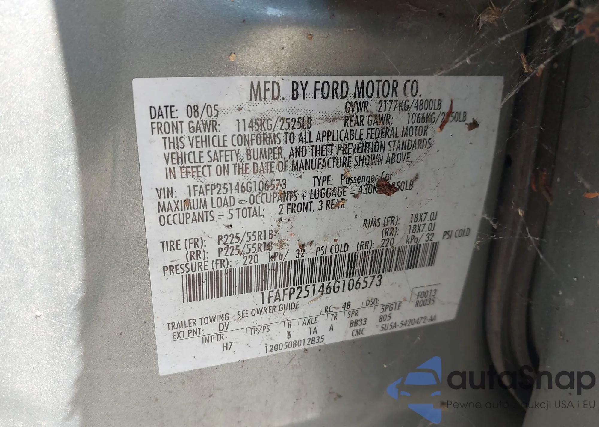 LOT: 43597322 VIN: 1FAFP55U32G183392