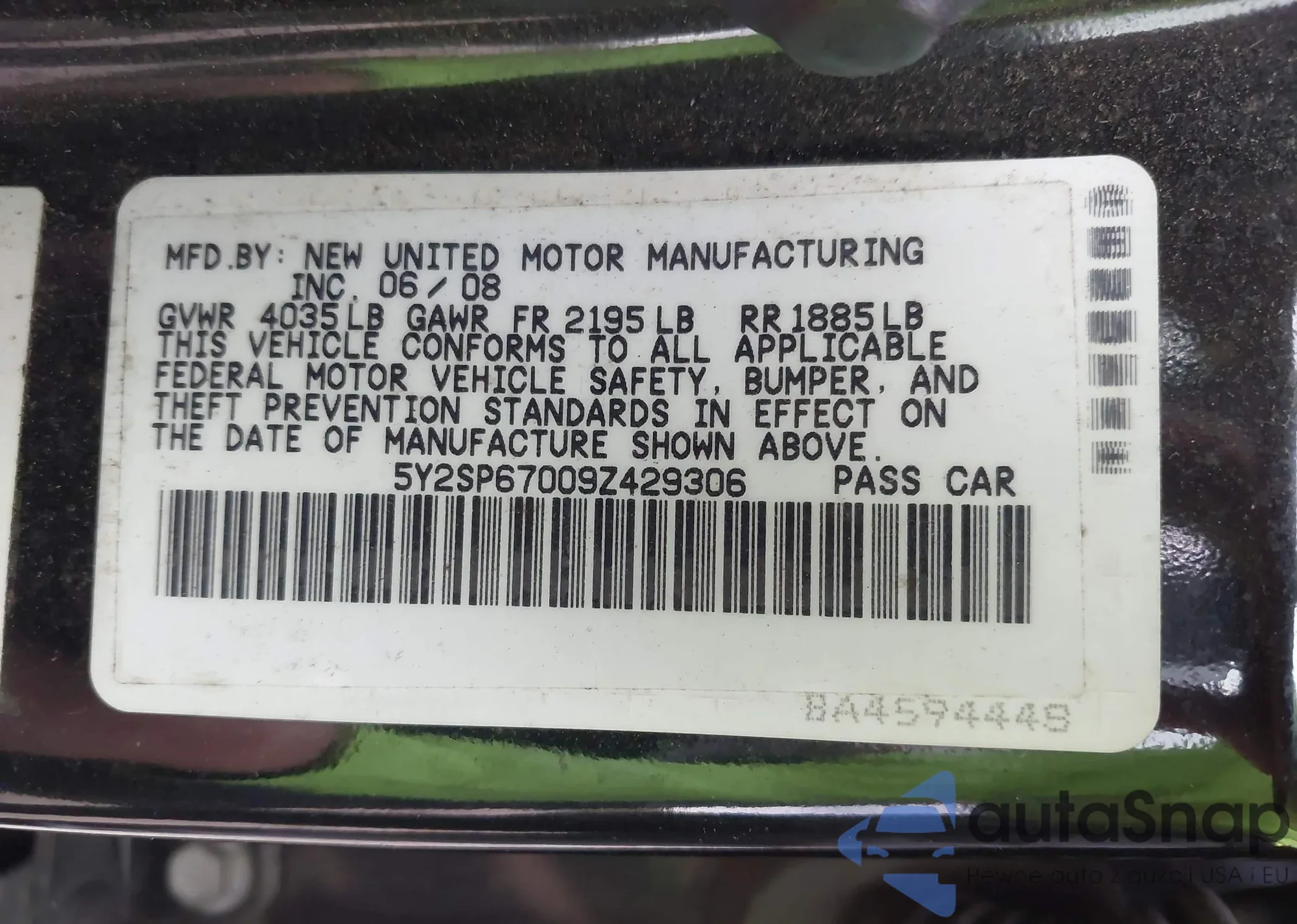 LOT: 43504702 VIN: 5Y2SP67009Z429306