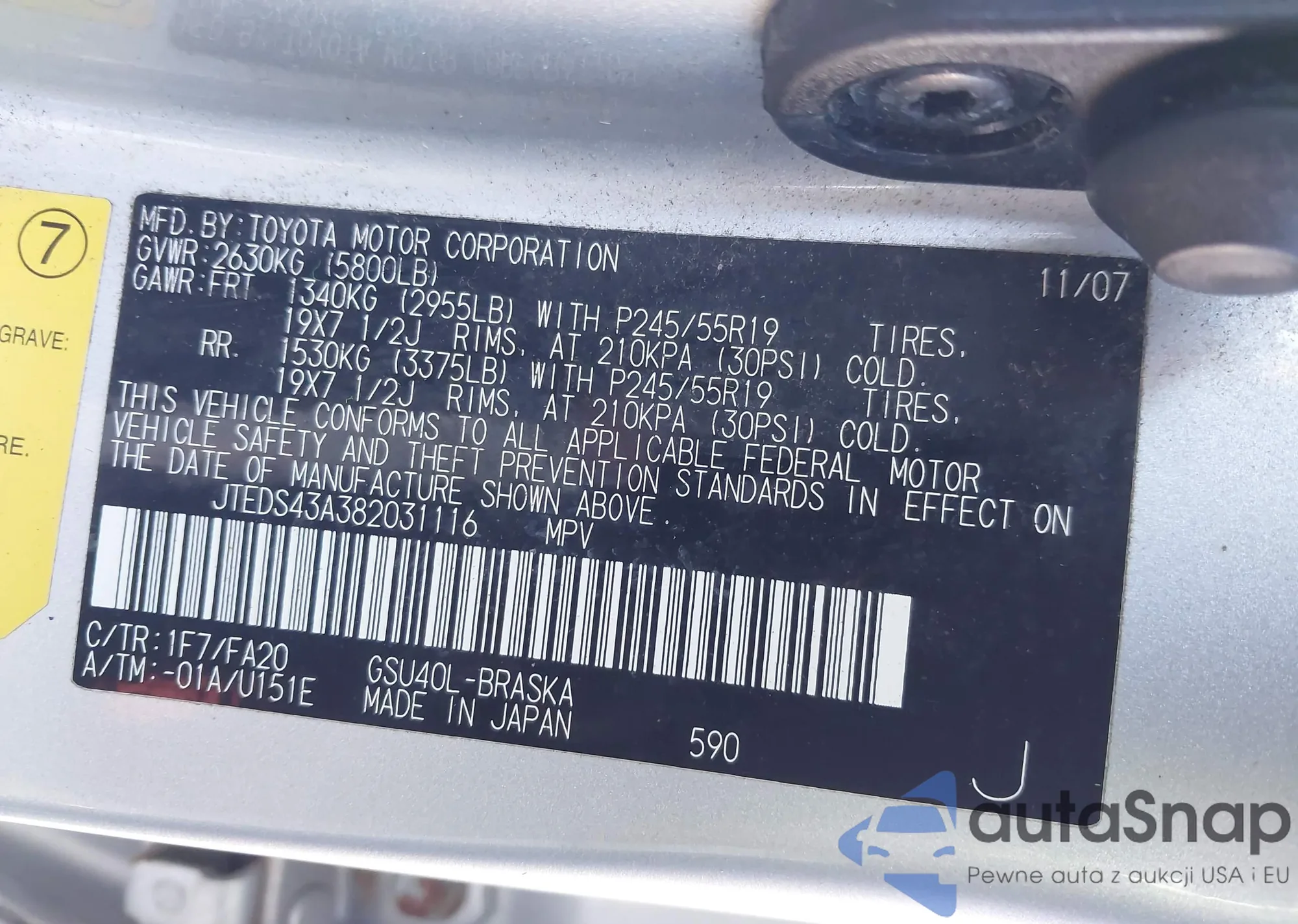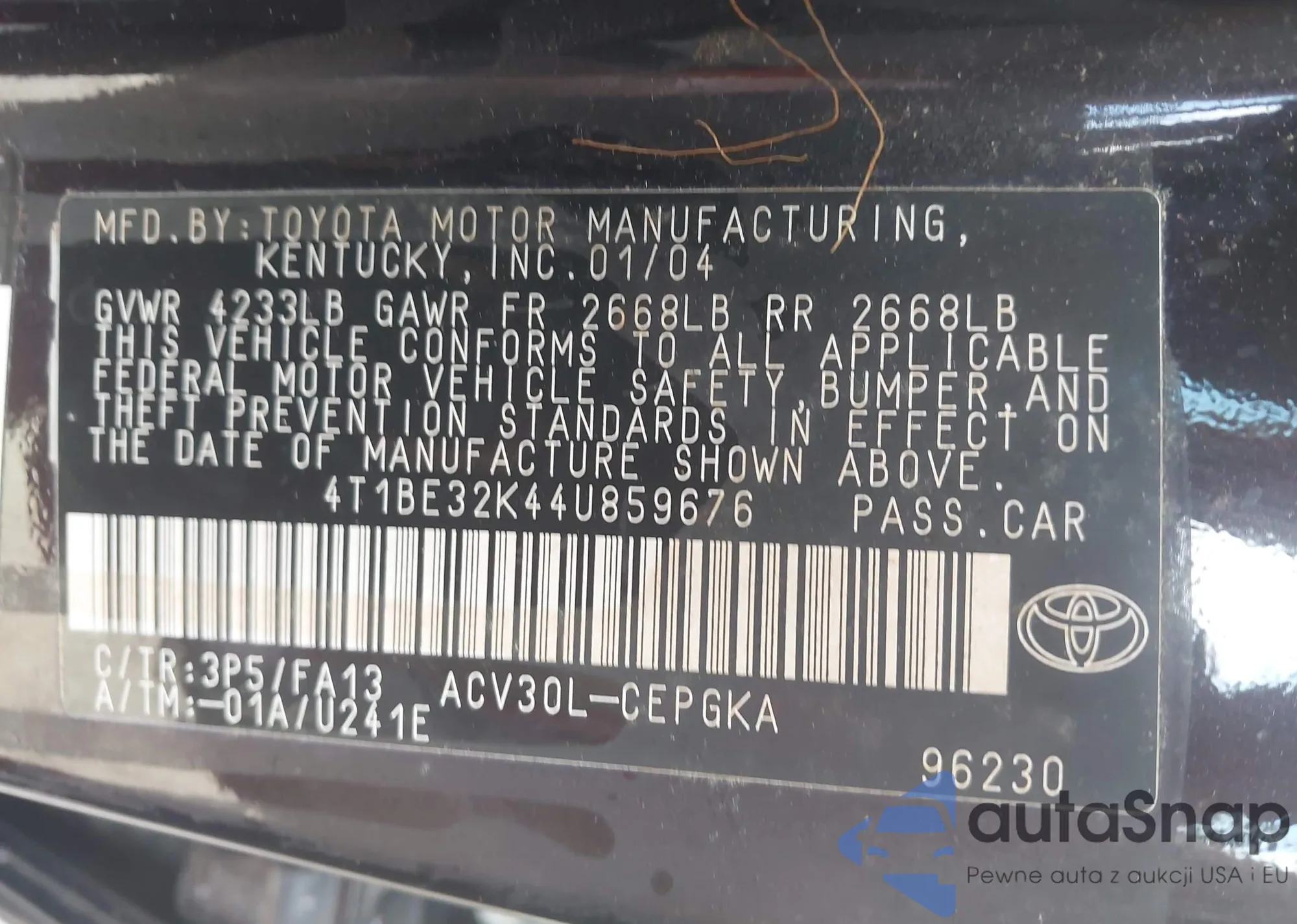LOT: 43610936 VIN: JTEBT17R18K003902