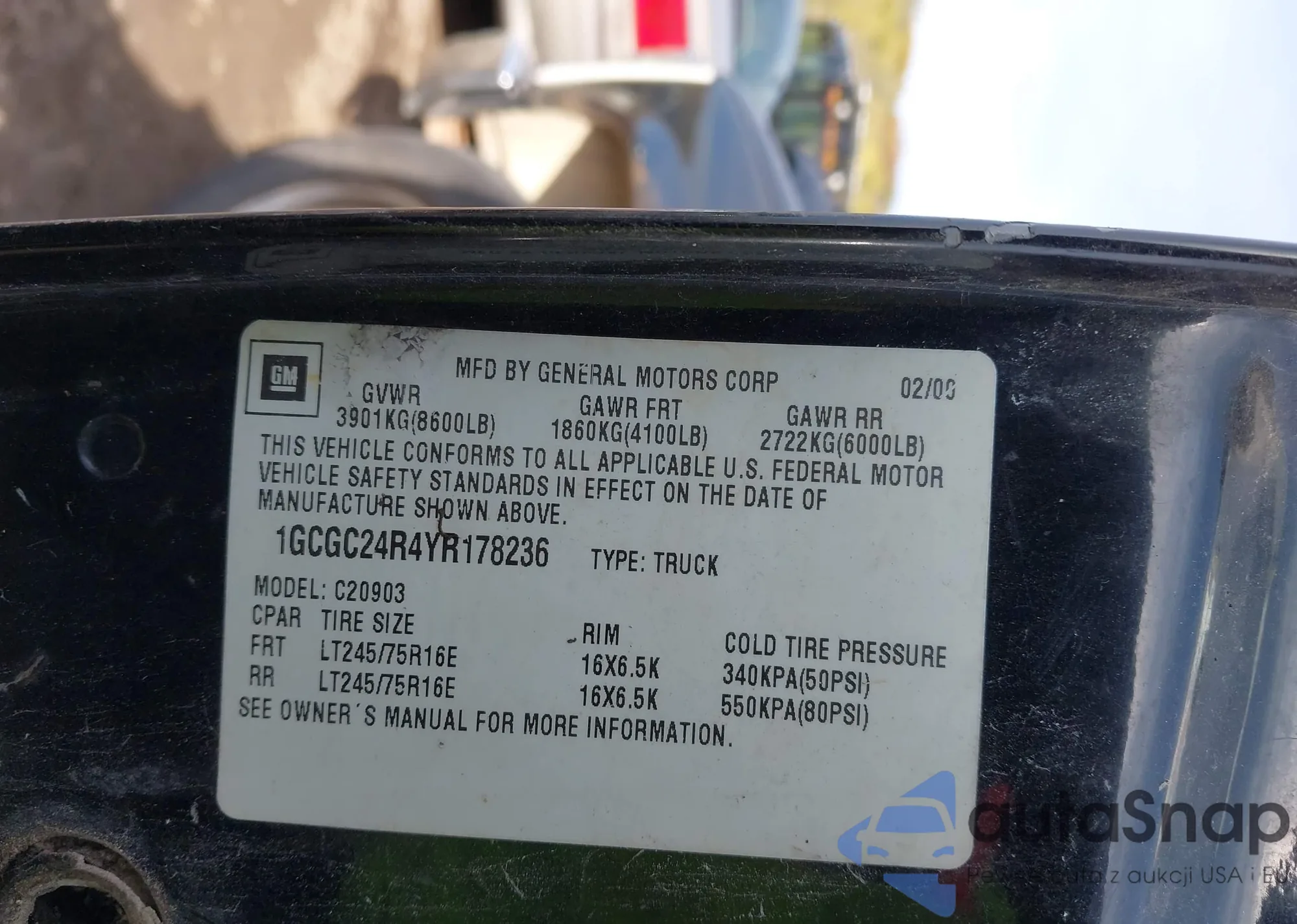 • VIN 1GCGC24R4YR178236