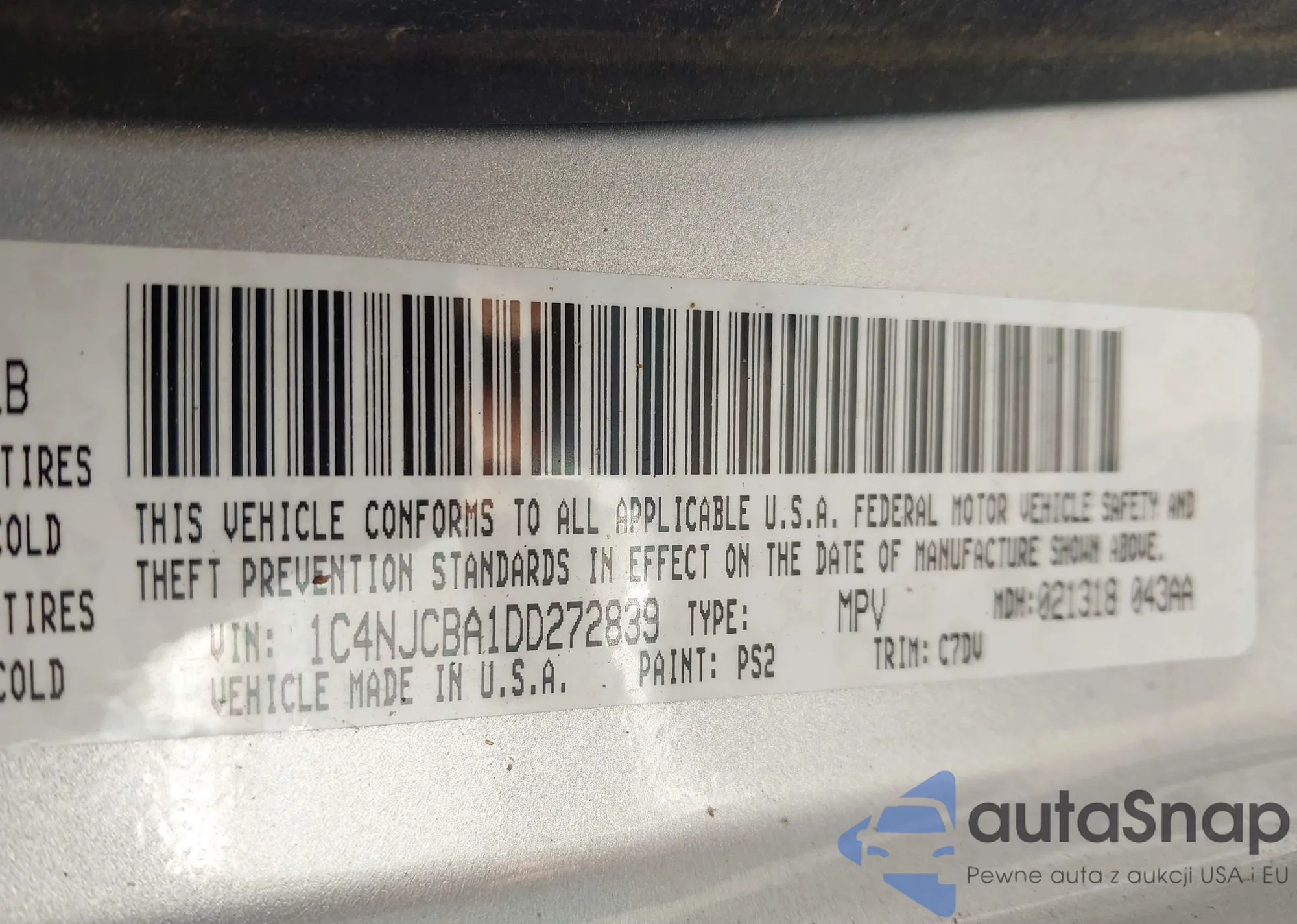 • VIN 1C4NJCBA1DD272839