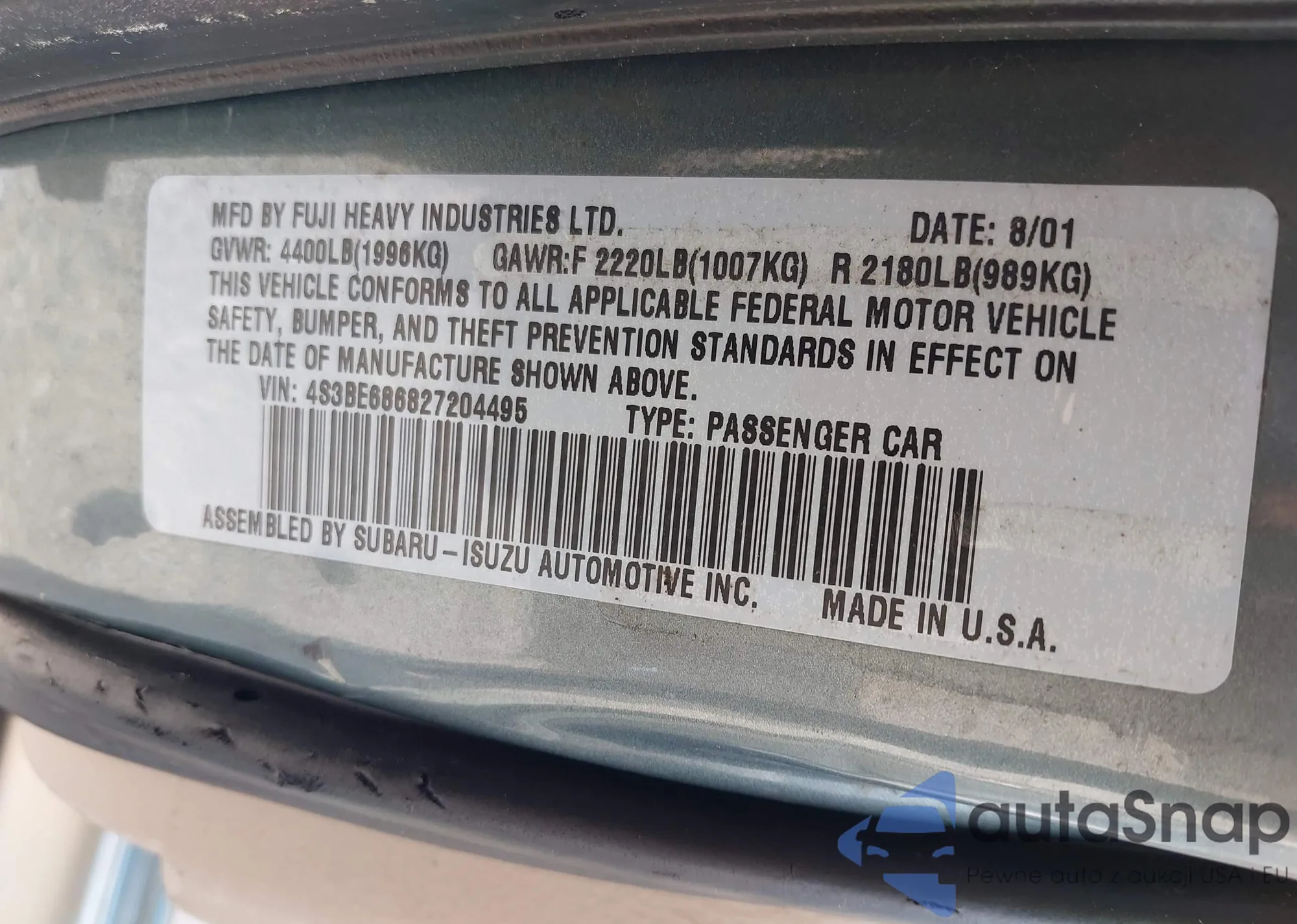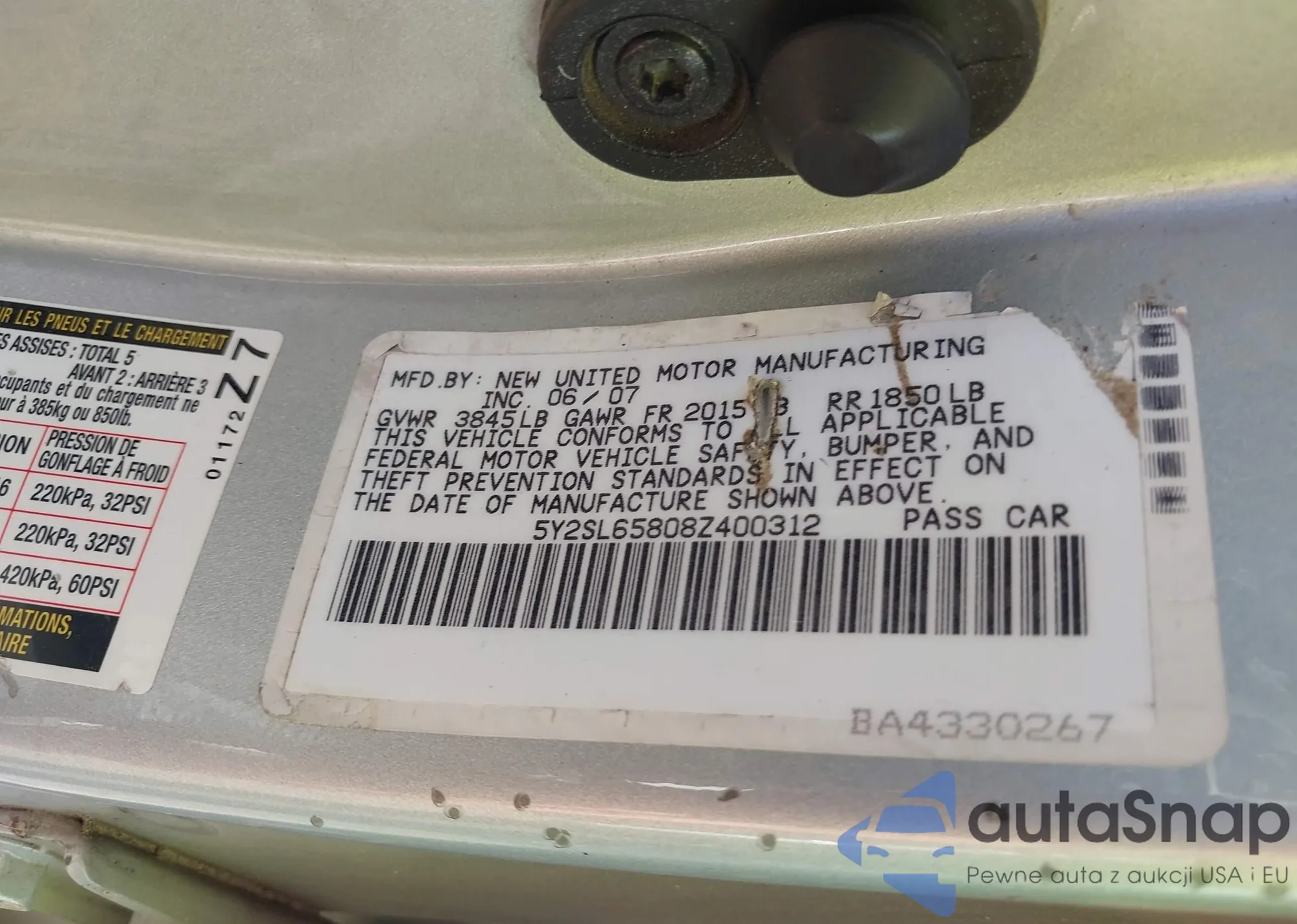 • VIN 5Y2SL65808Z400312