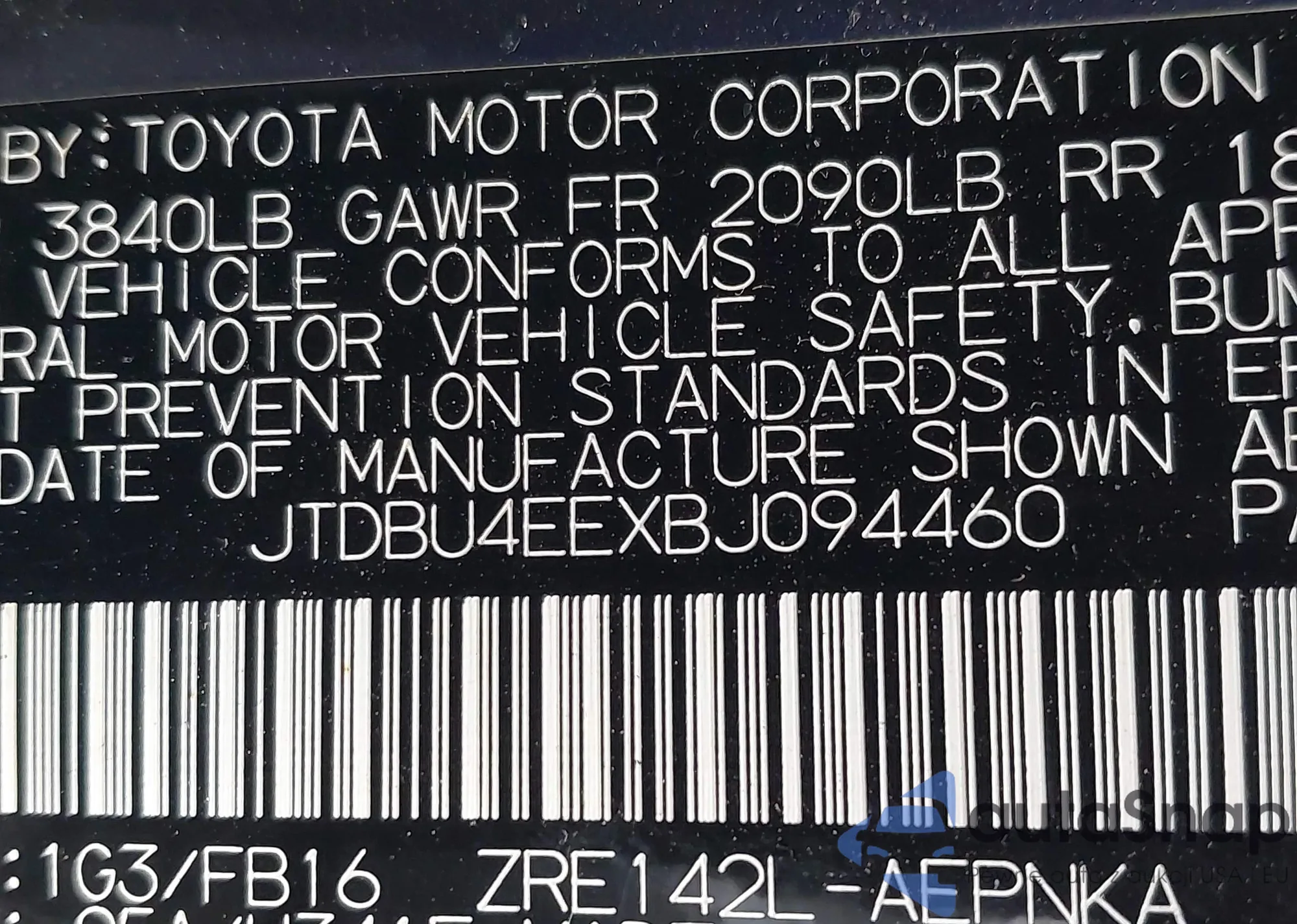 • VIN JTDBU4EEXBJ094460