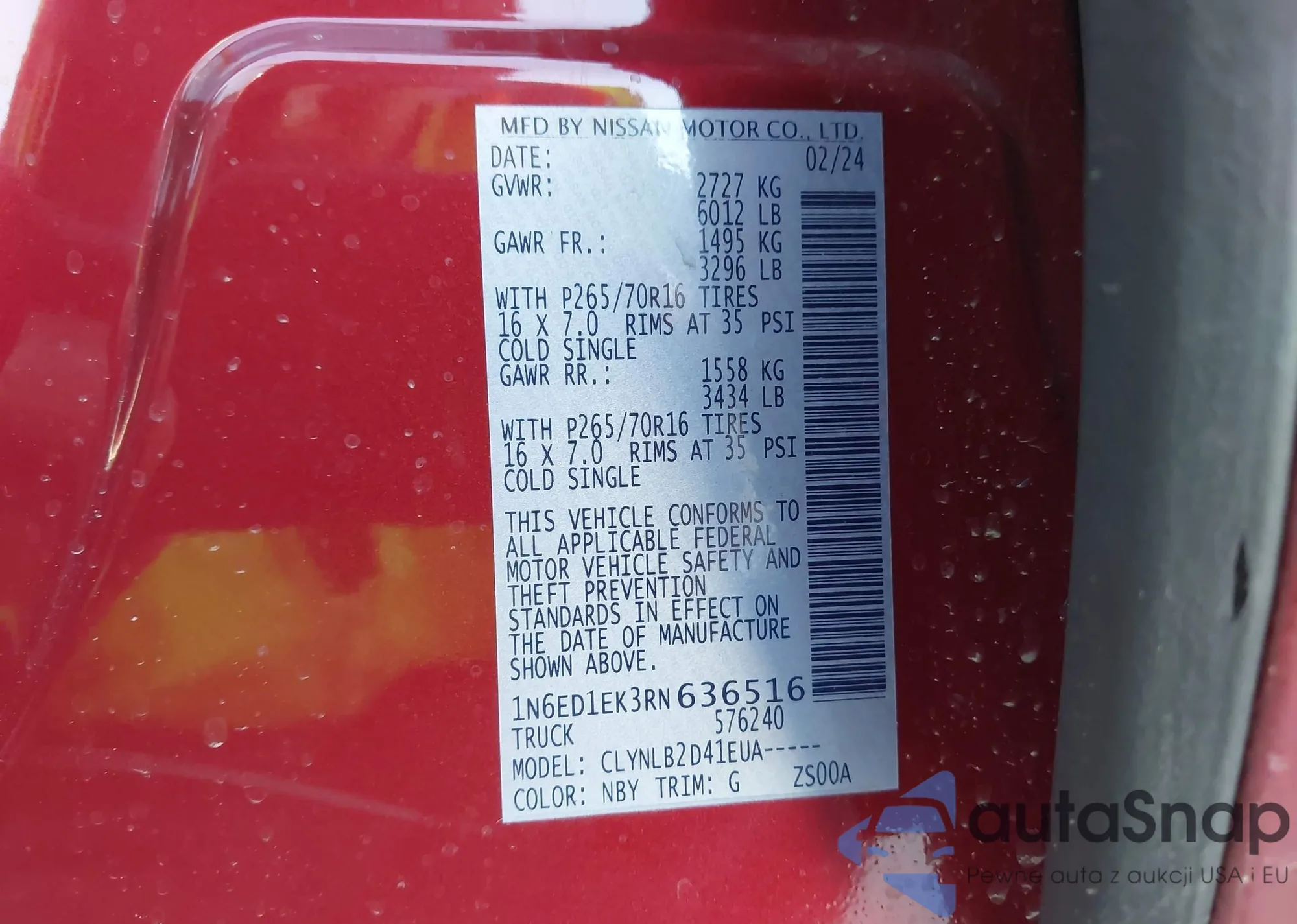 • VIN 1N6ED1EK3RN636516