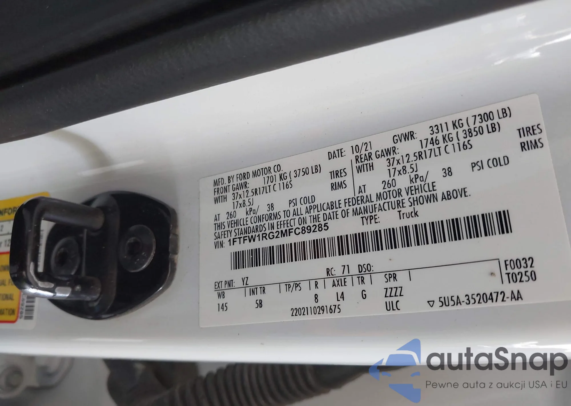 LOT: 43429486 VIN: 1FTFW1RG2MFC89285