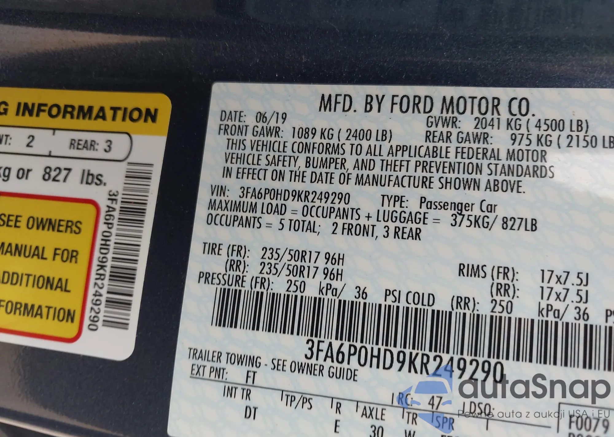 • VIN 3FA6P0HD9KR249290