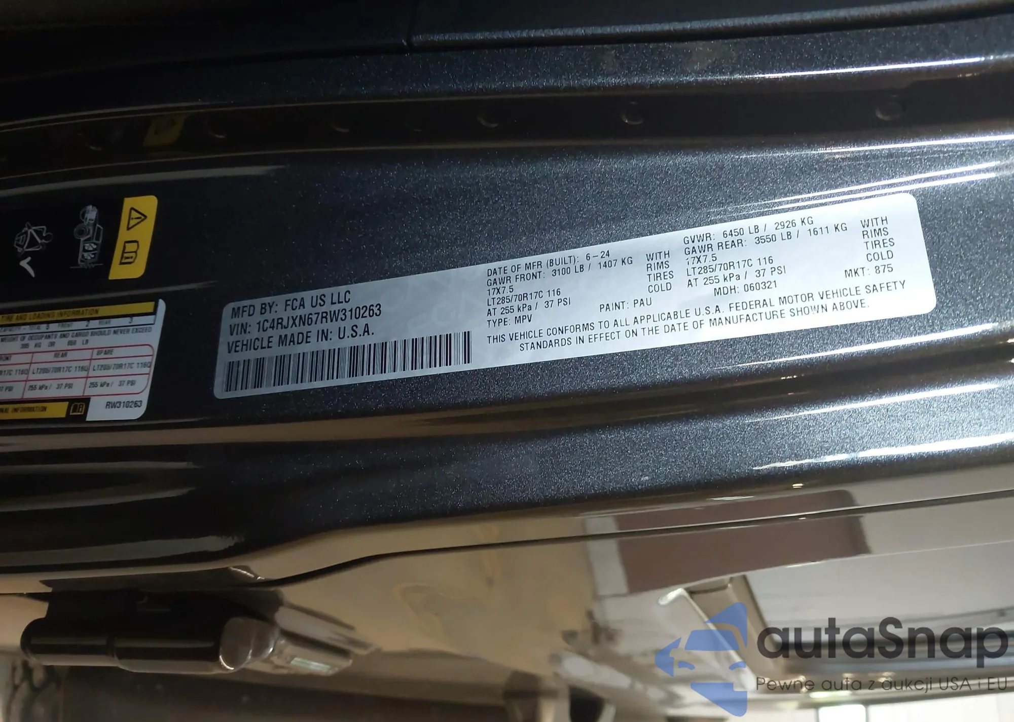 • VIN 1C4RJXN67RW310263