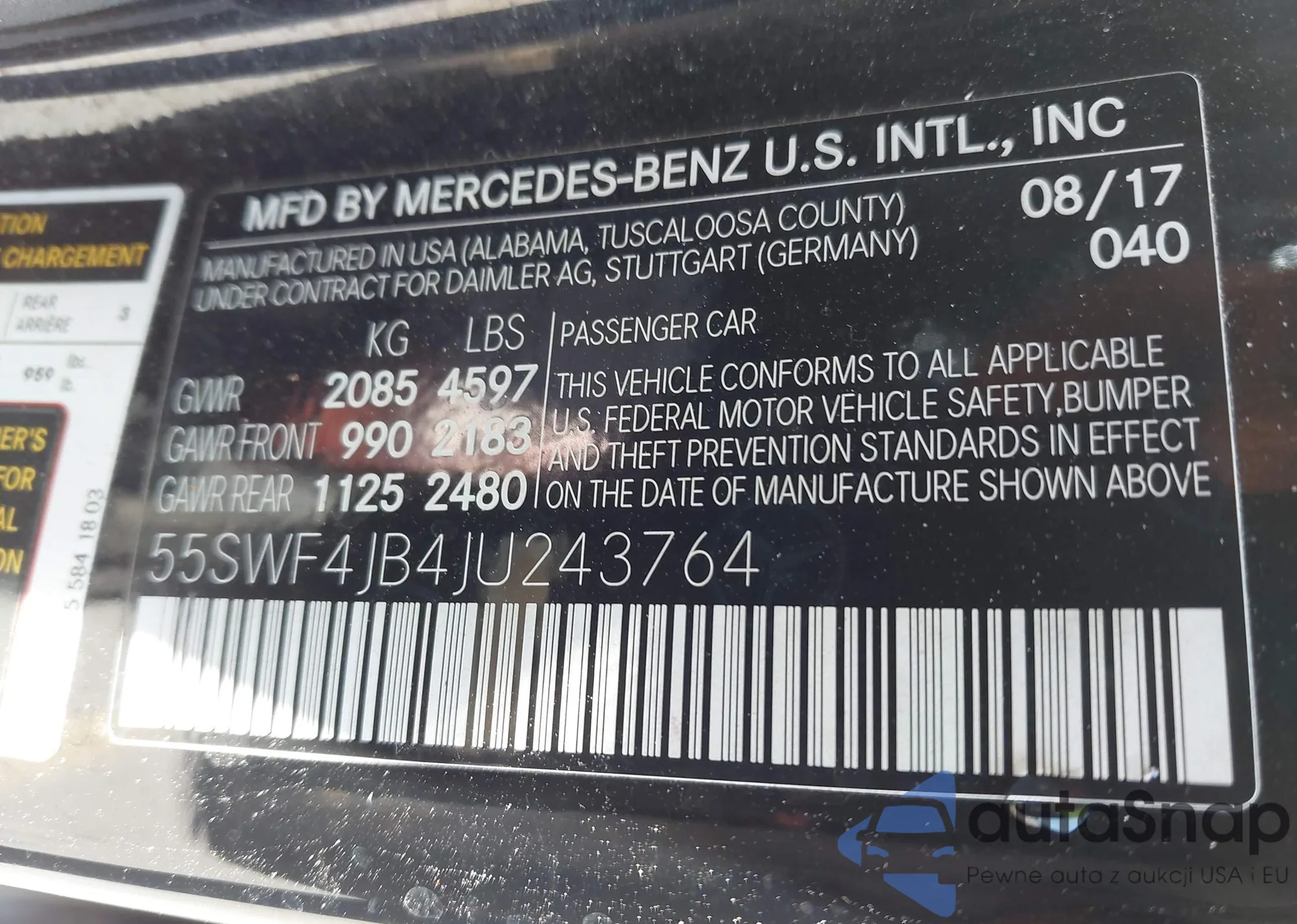 LOT: 42849475 VIN: 55SWF4JB4JU243764