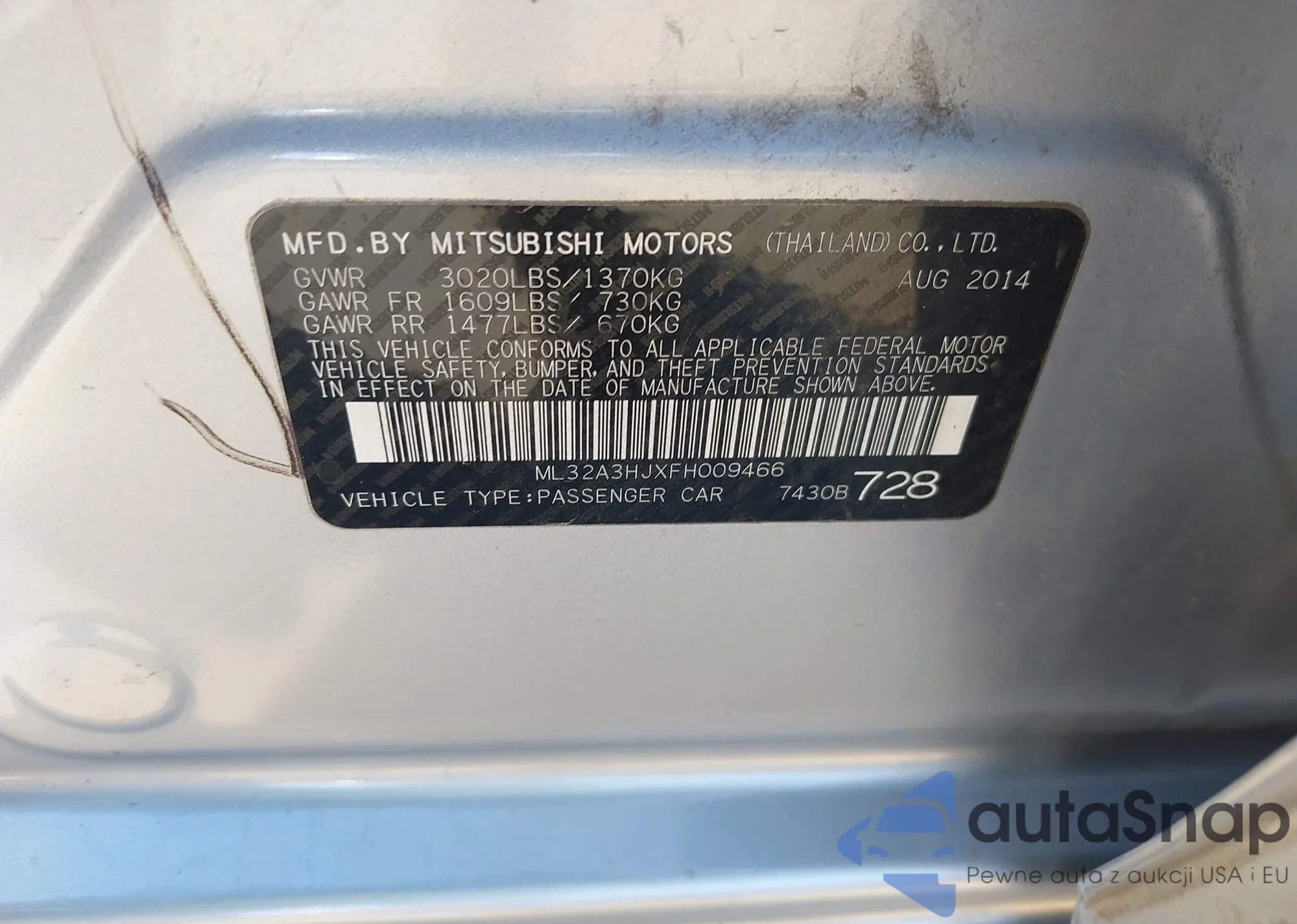LOT: 43279650 VIN: JM1BK343871624870