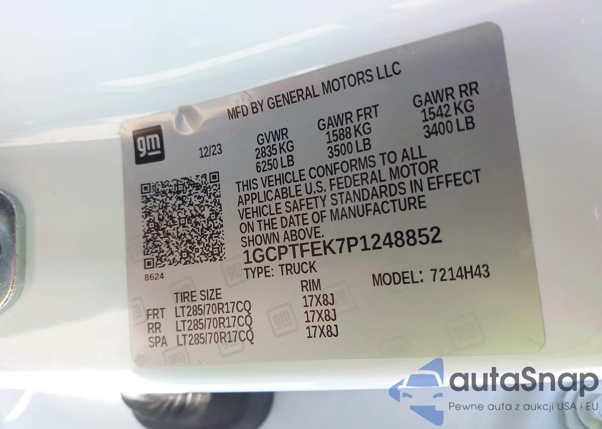 LOT: 43465603 VIN: 1GCPTFEK7P1248852