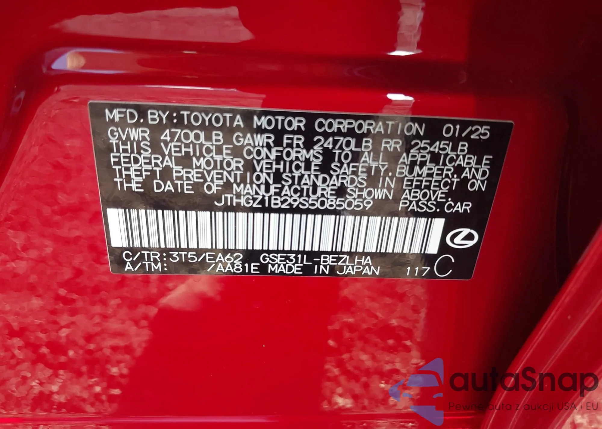 • VIN JTHGZ1B29S5085059
