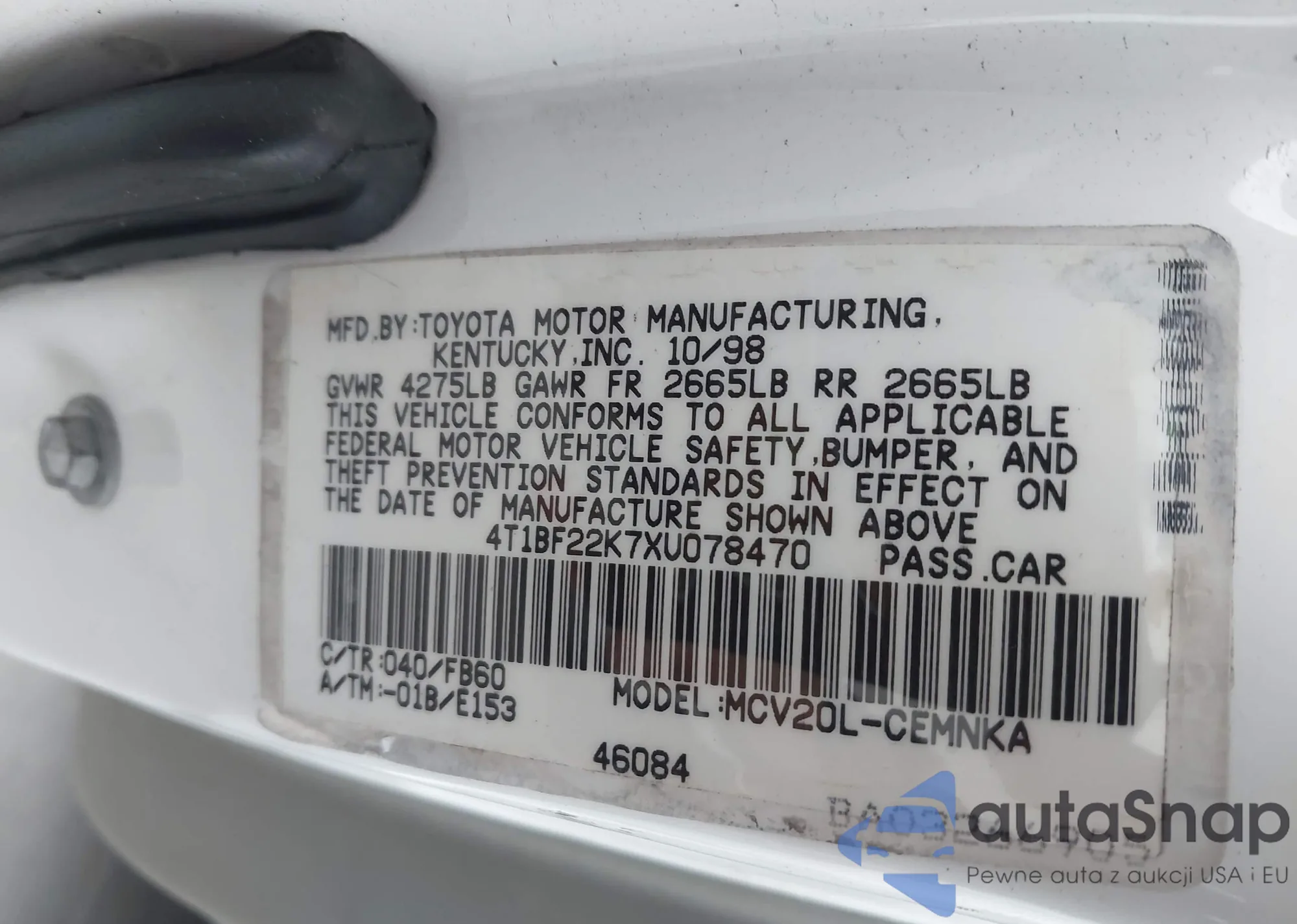 • VIN 4T1BF22K7XU078470