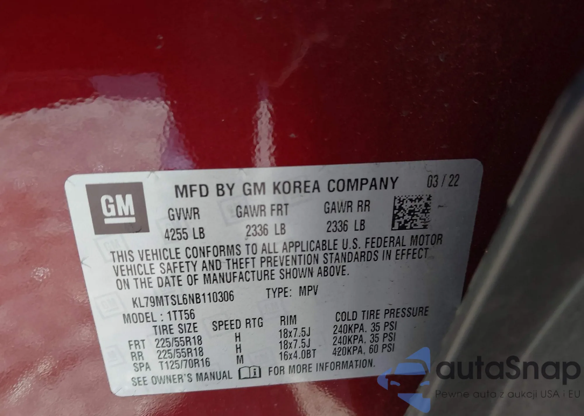• VIN KL79MTSL6NB110306