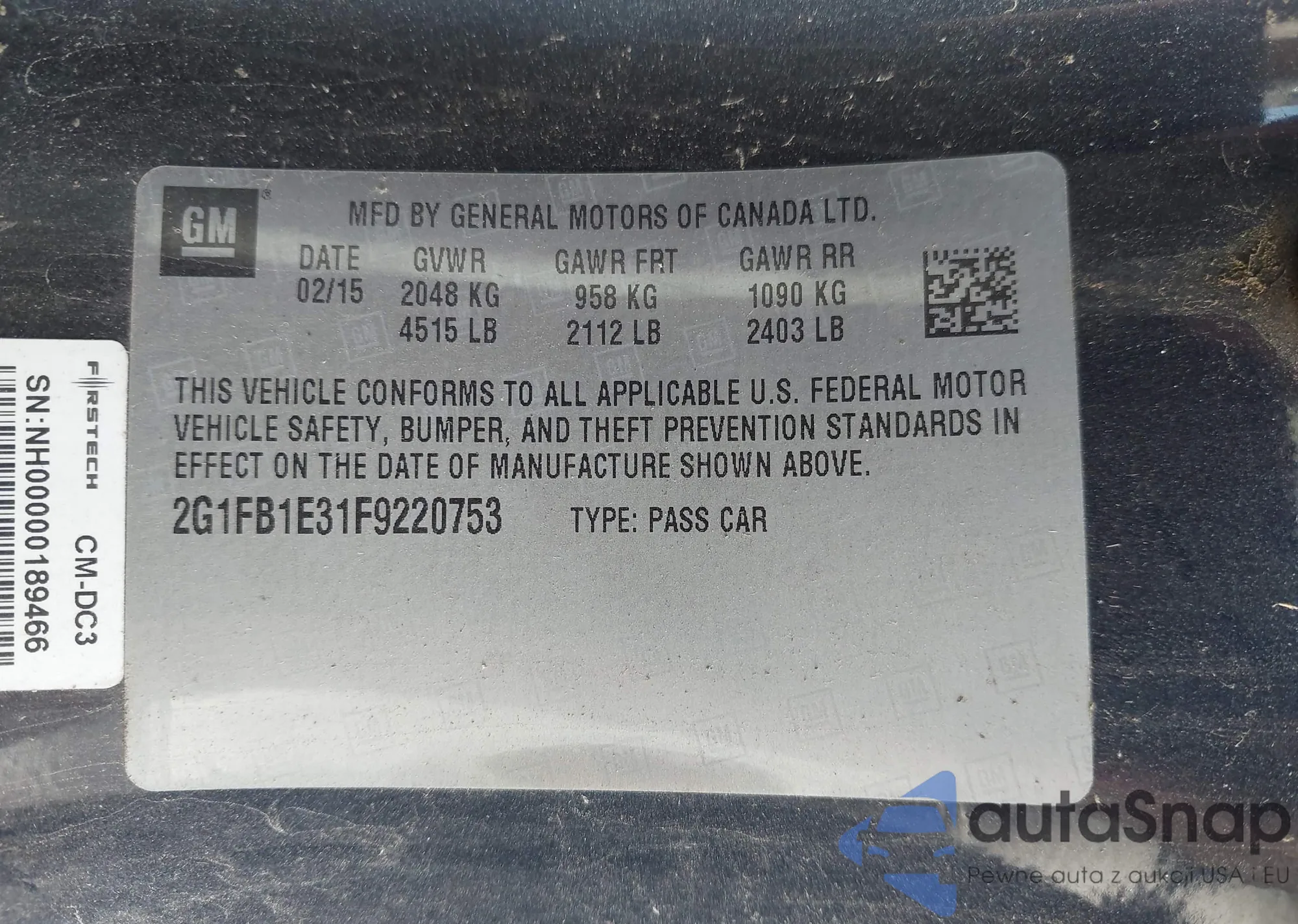 • VIN 2G1FB1E31F9220753
