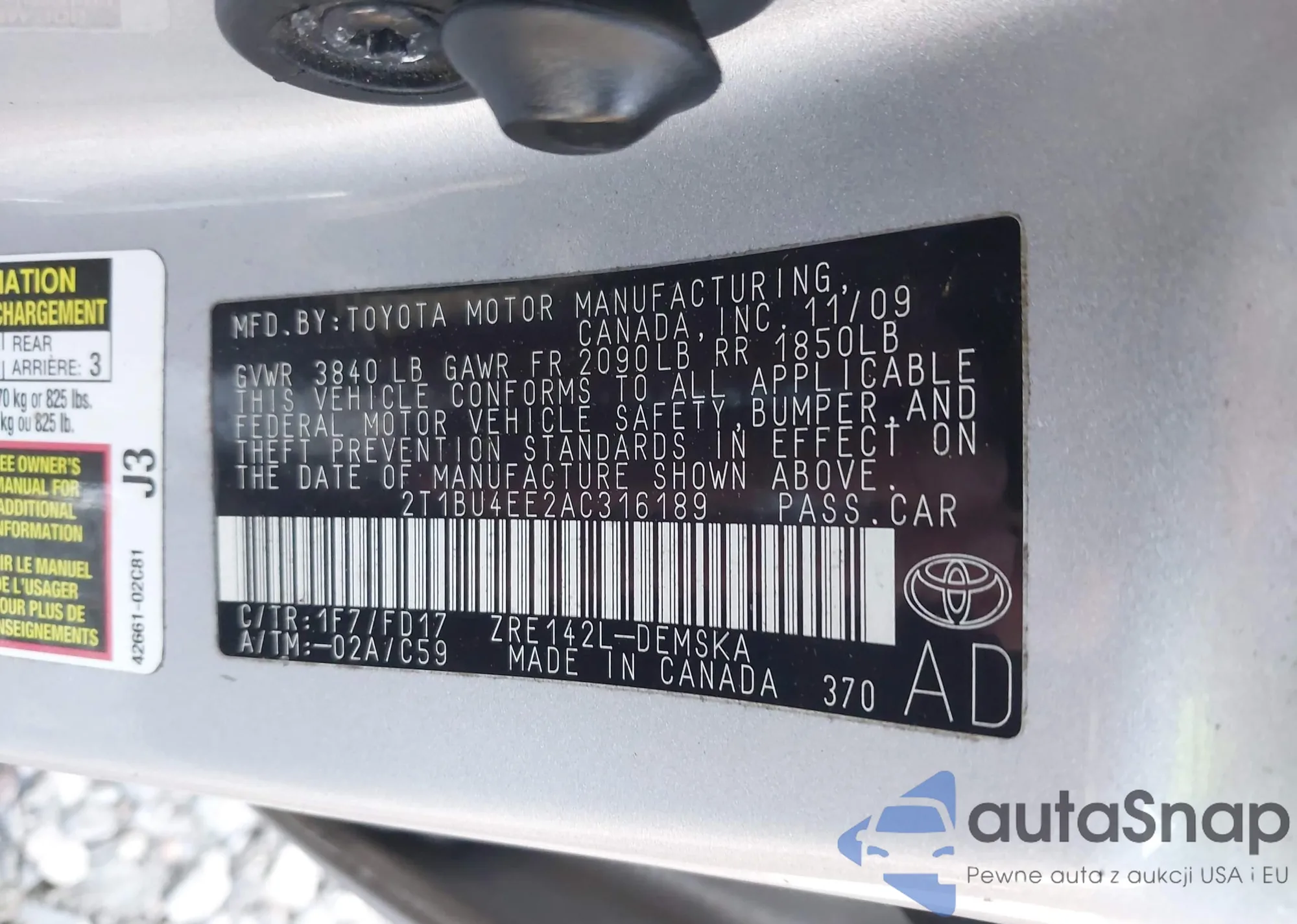• VIN 2T1BU4EE2AC316189