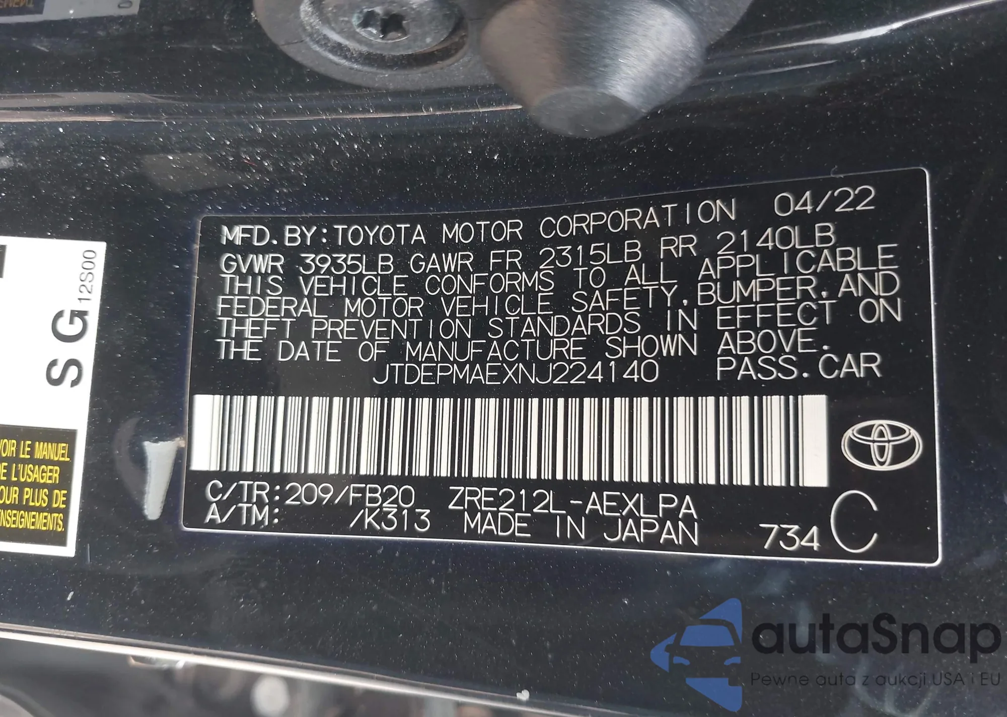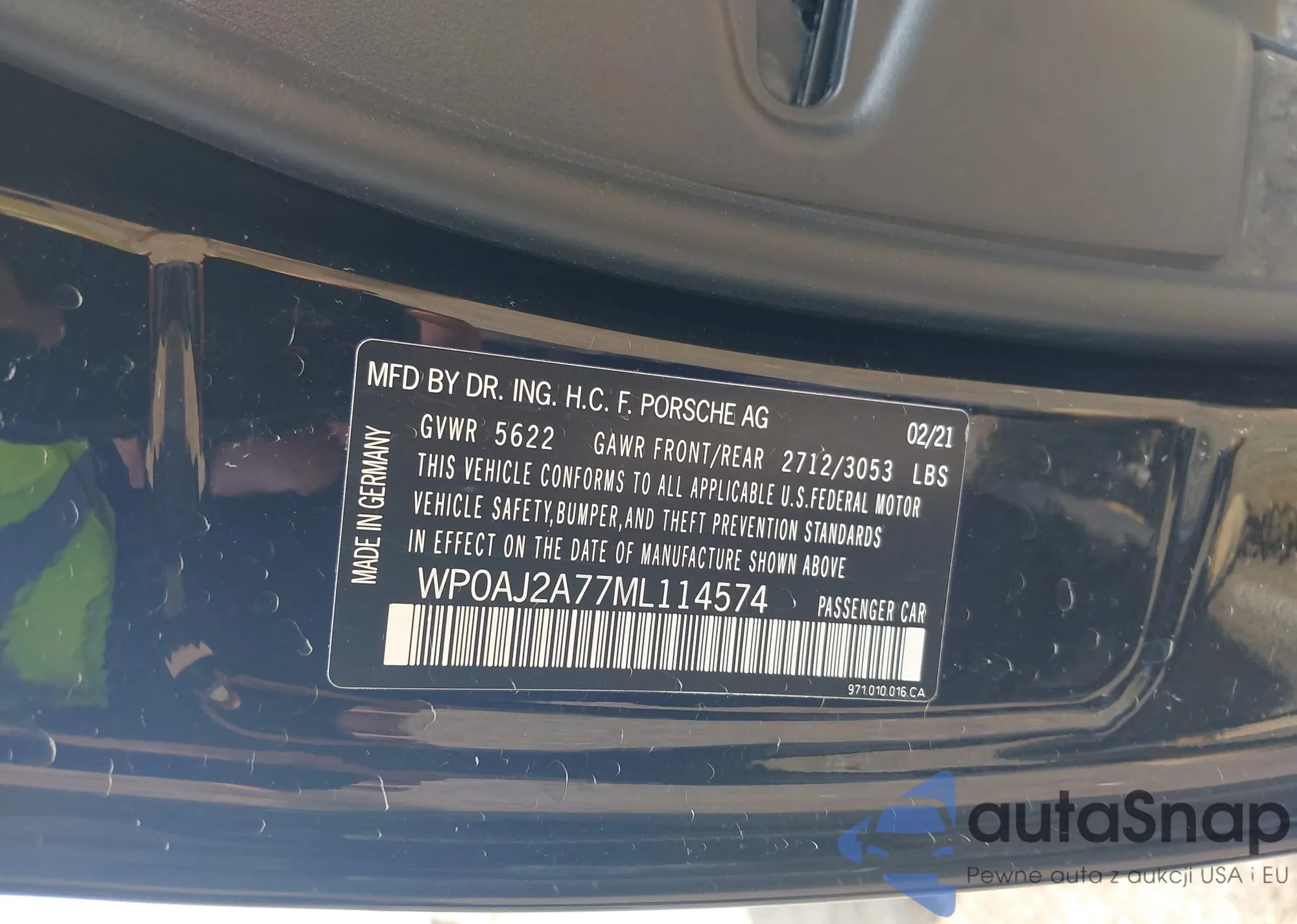 LOT: 42925644 VIN: WP0AJ2A77ML114574