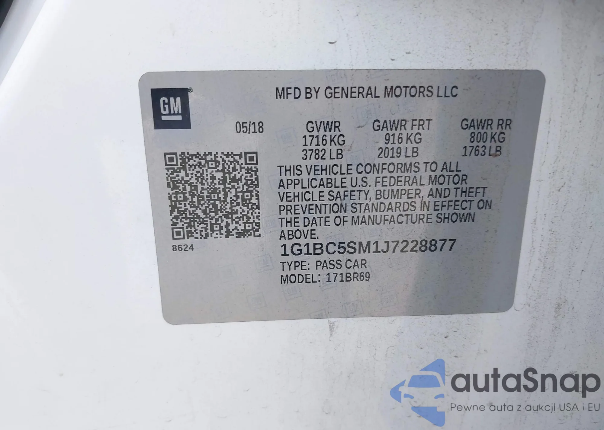 LOT: 43066362 VIN: 1G1BC5SM1J7228877