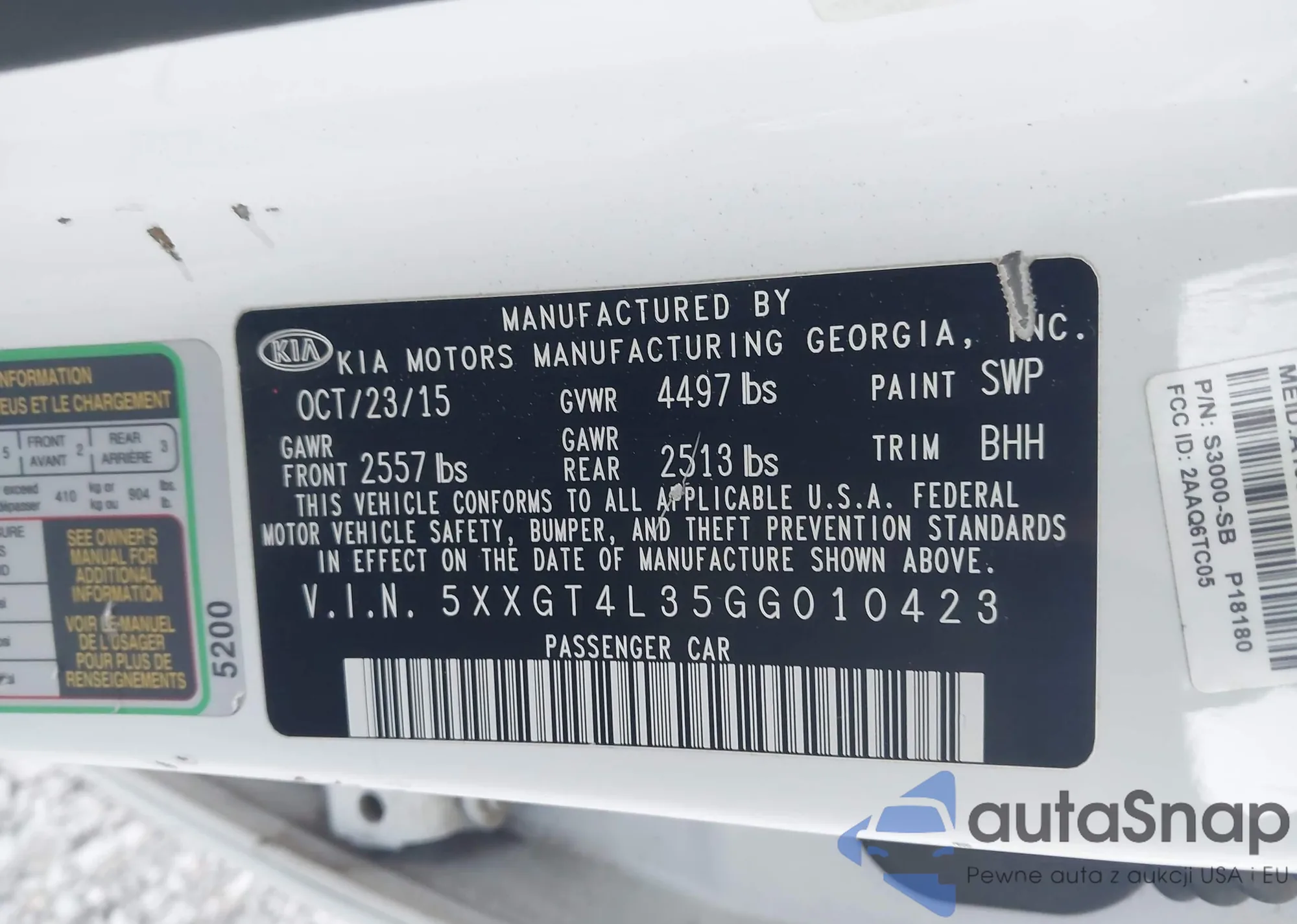 LOT: 43432209 VIN: 5XXGT4L3XJG223424