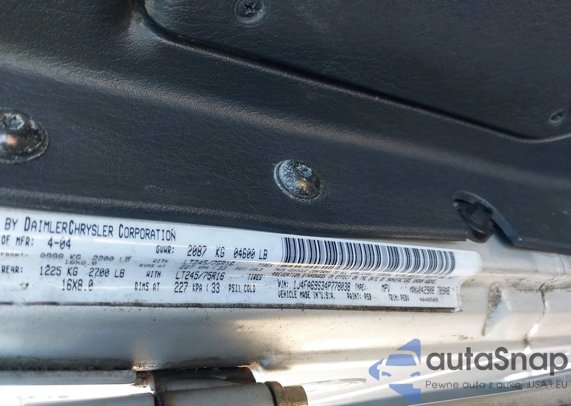 • VIN 1J4FA69S34P778038
