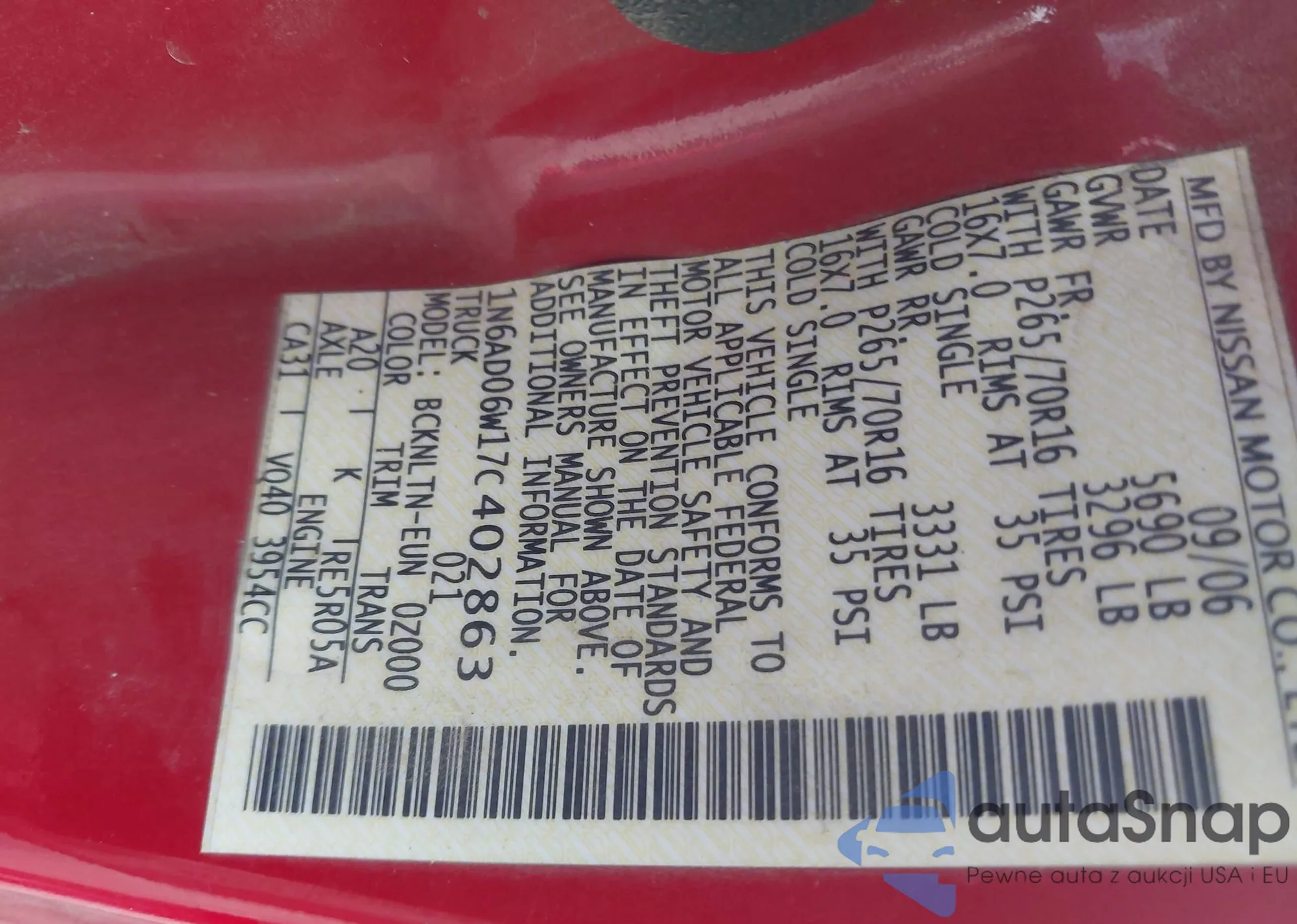 • VIN 1N6AD06W17C402863