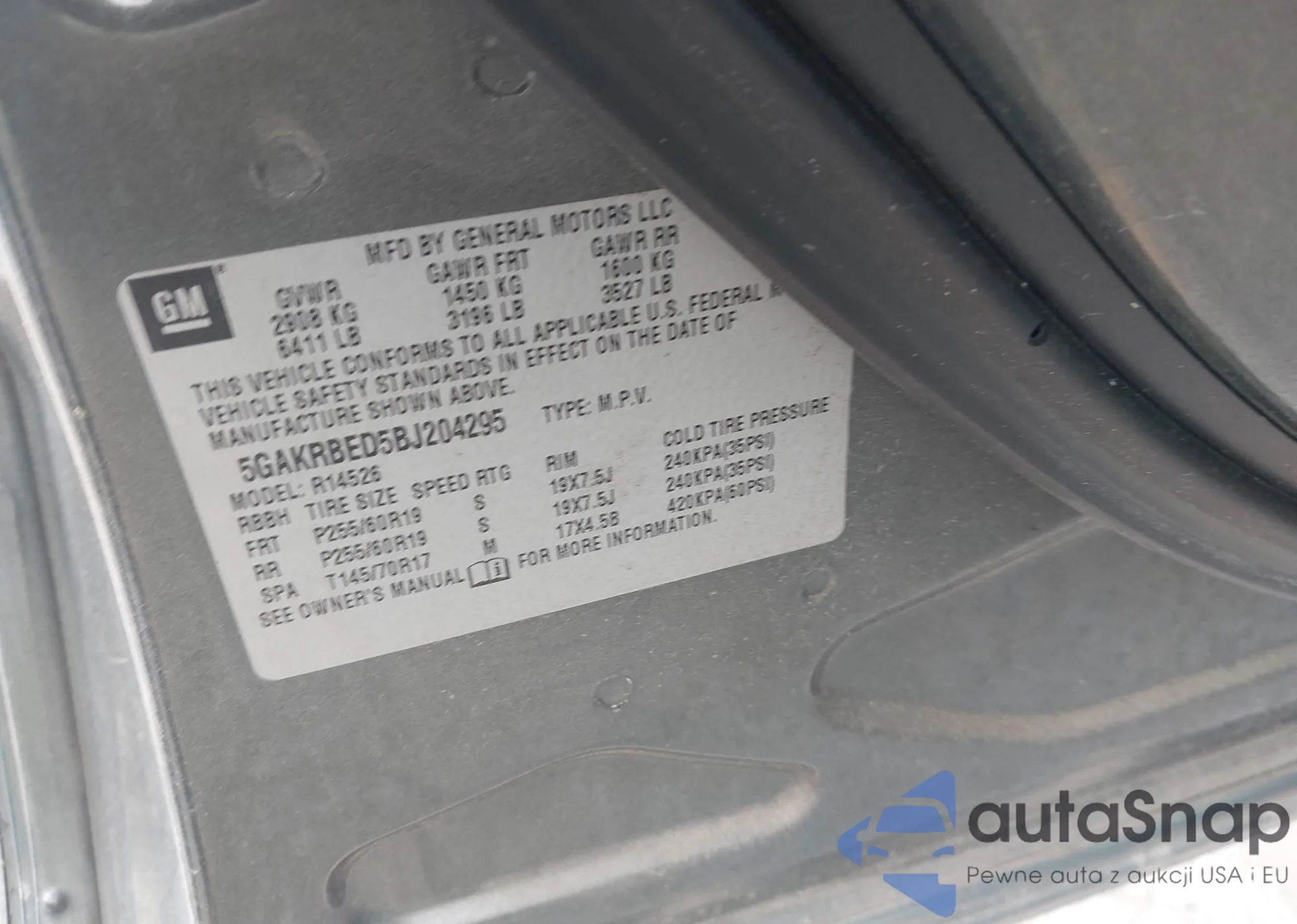 • VIN 5GAKRBED5BJ204295