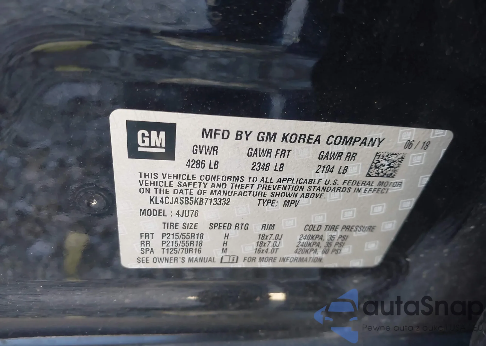 LOT: 43482193 VIN: KNADM4A39F6422129