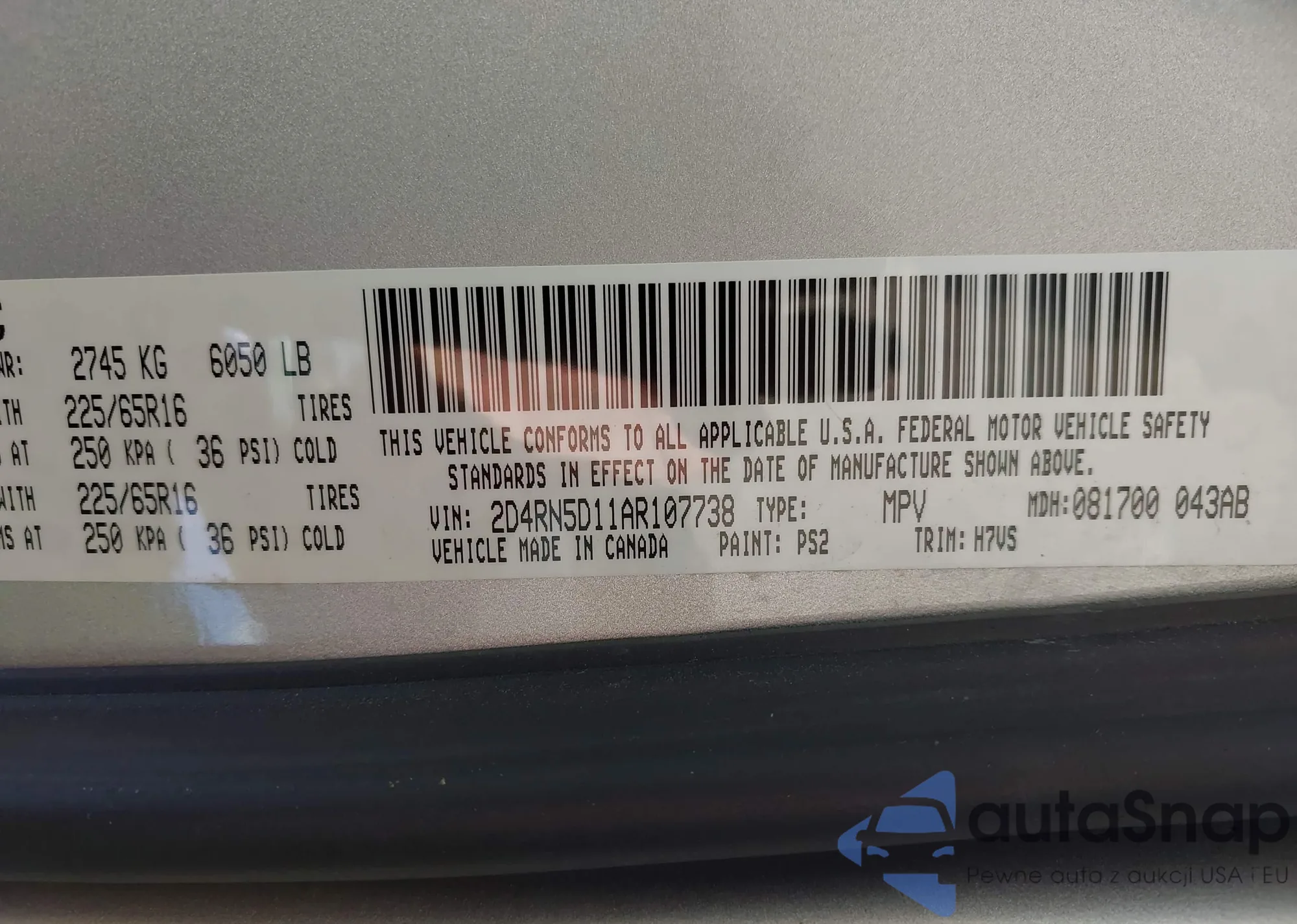 • VIN 2D4RN5D11AR107738