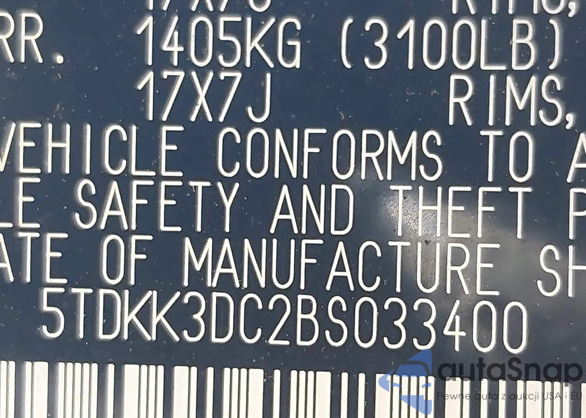 • VIN 5TDKK3DC2BS033400