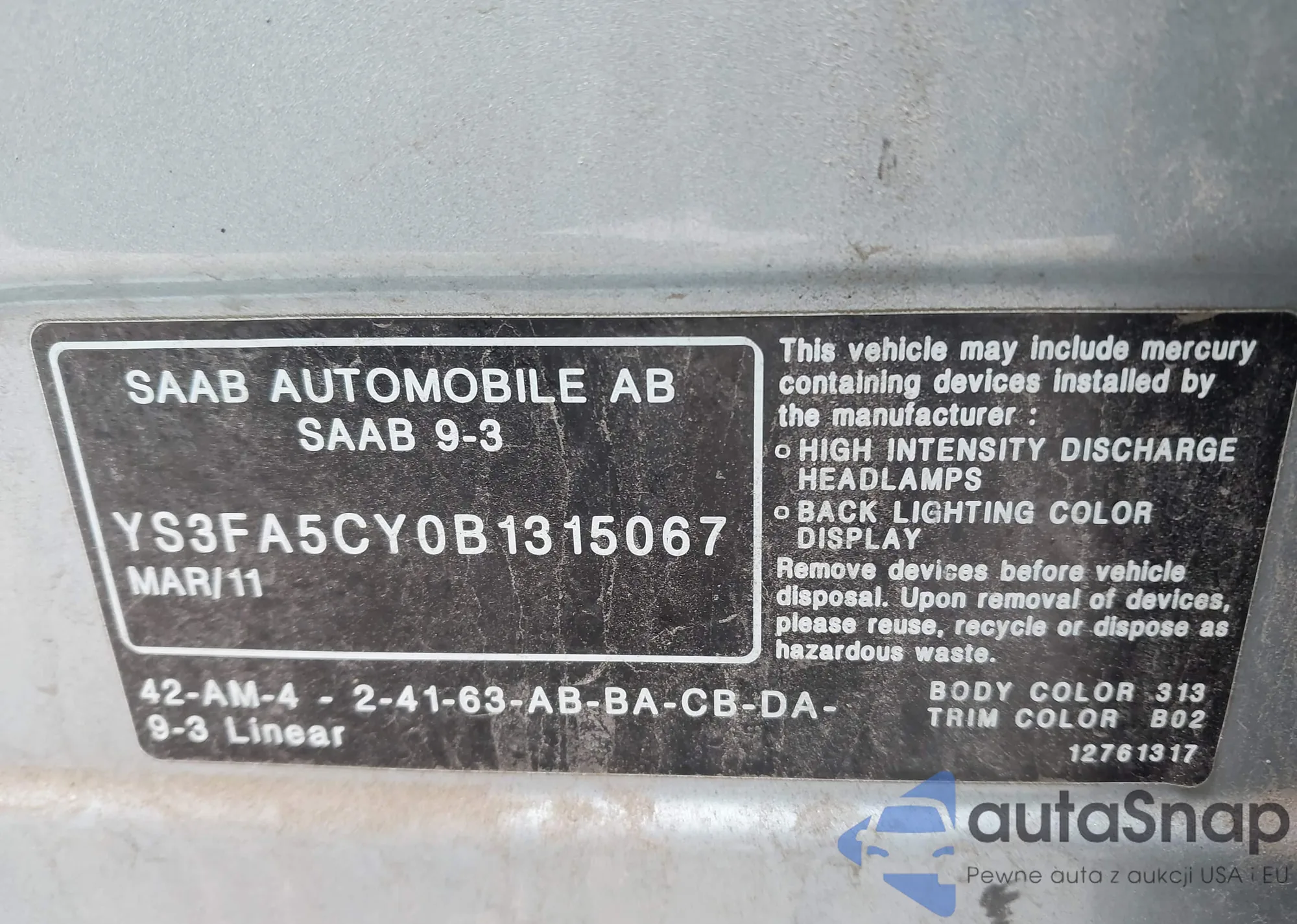 • VIN YS3FA5CY0B1315067