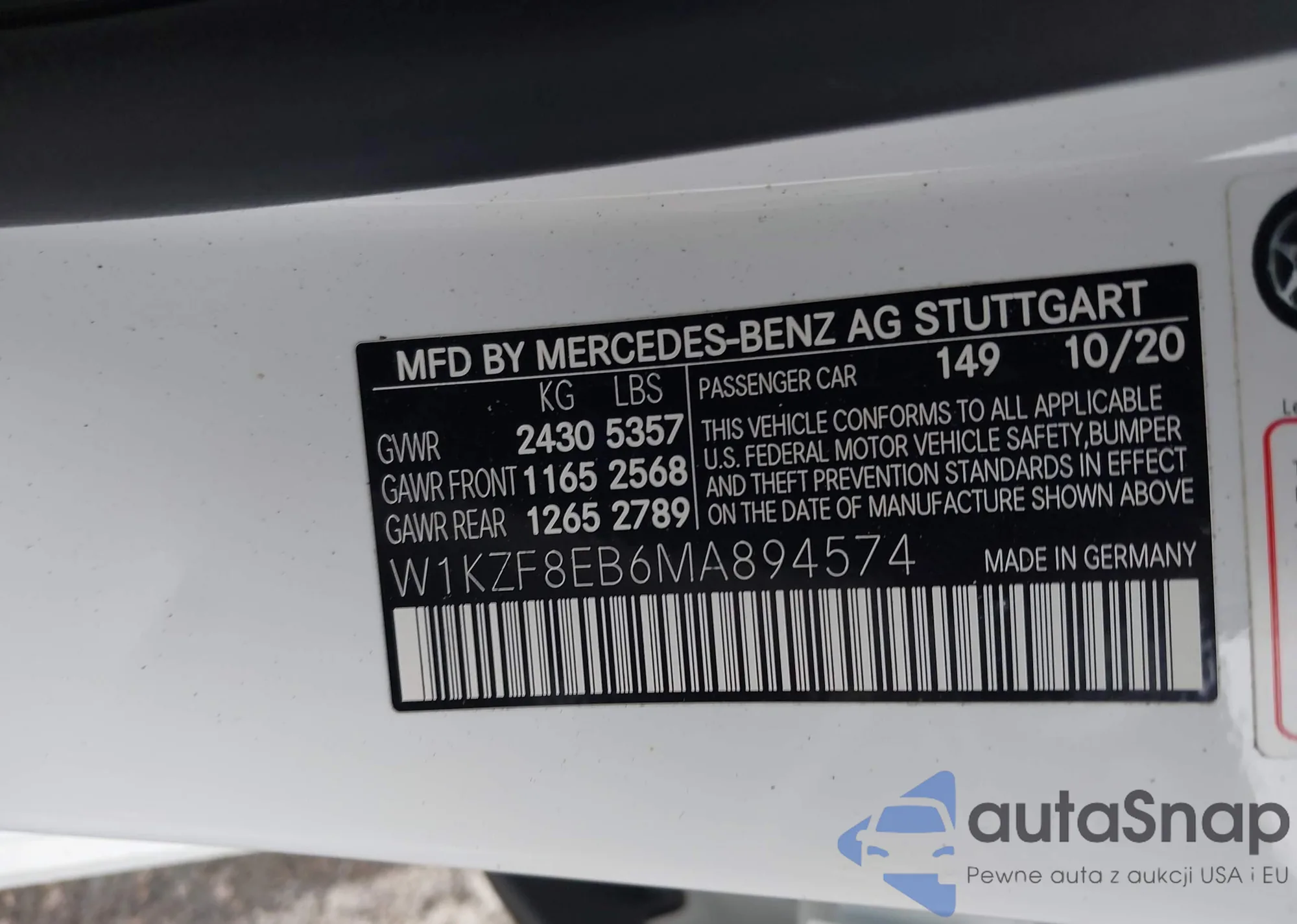 • VIN W1KZF8EB6MA894574