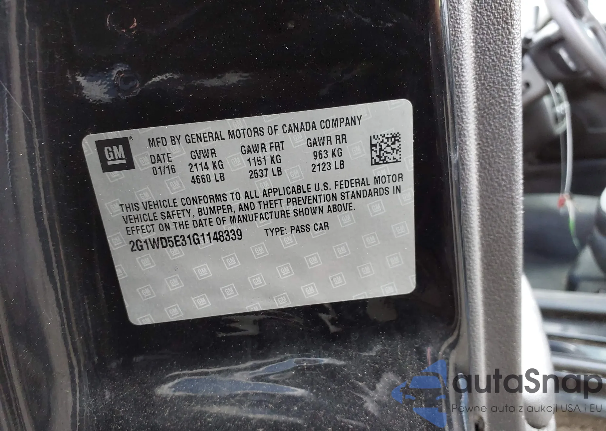 • VIN 2G1WD5E31G1148339