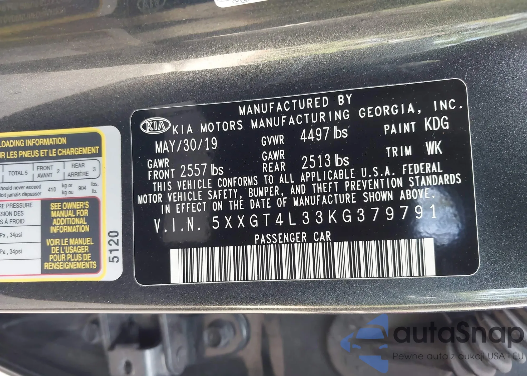 • VIN 5XXGT4L33KG379791