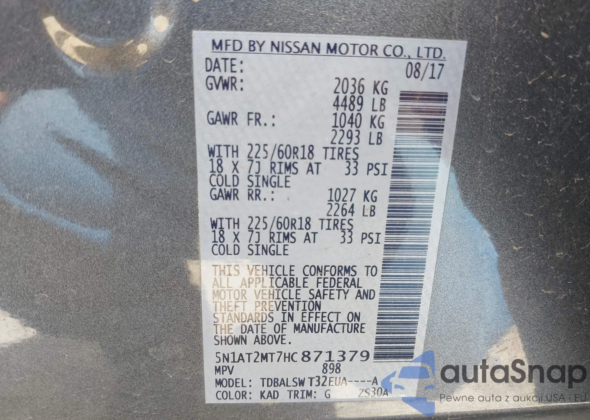 • VIN 5N1AT2MT7HC871379