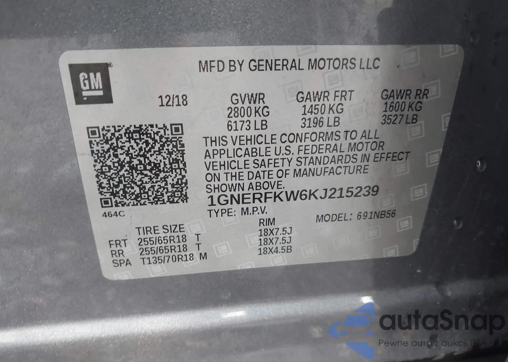 LOT: 43205416 VIN: 1GKKNULS6KZ285272