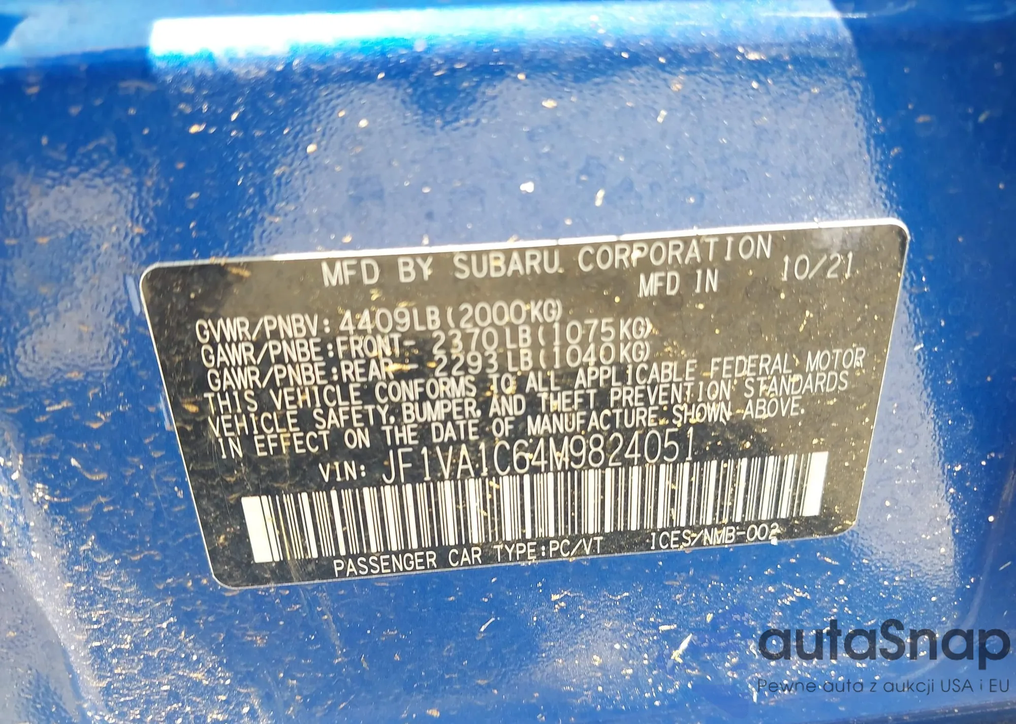 LOT: 43130503 VIN: JF1VA1C64M9824051