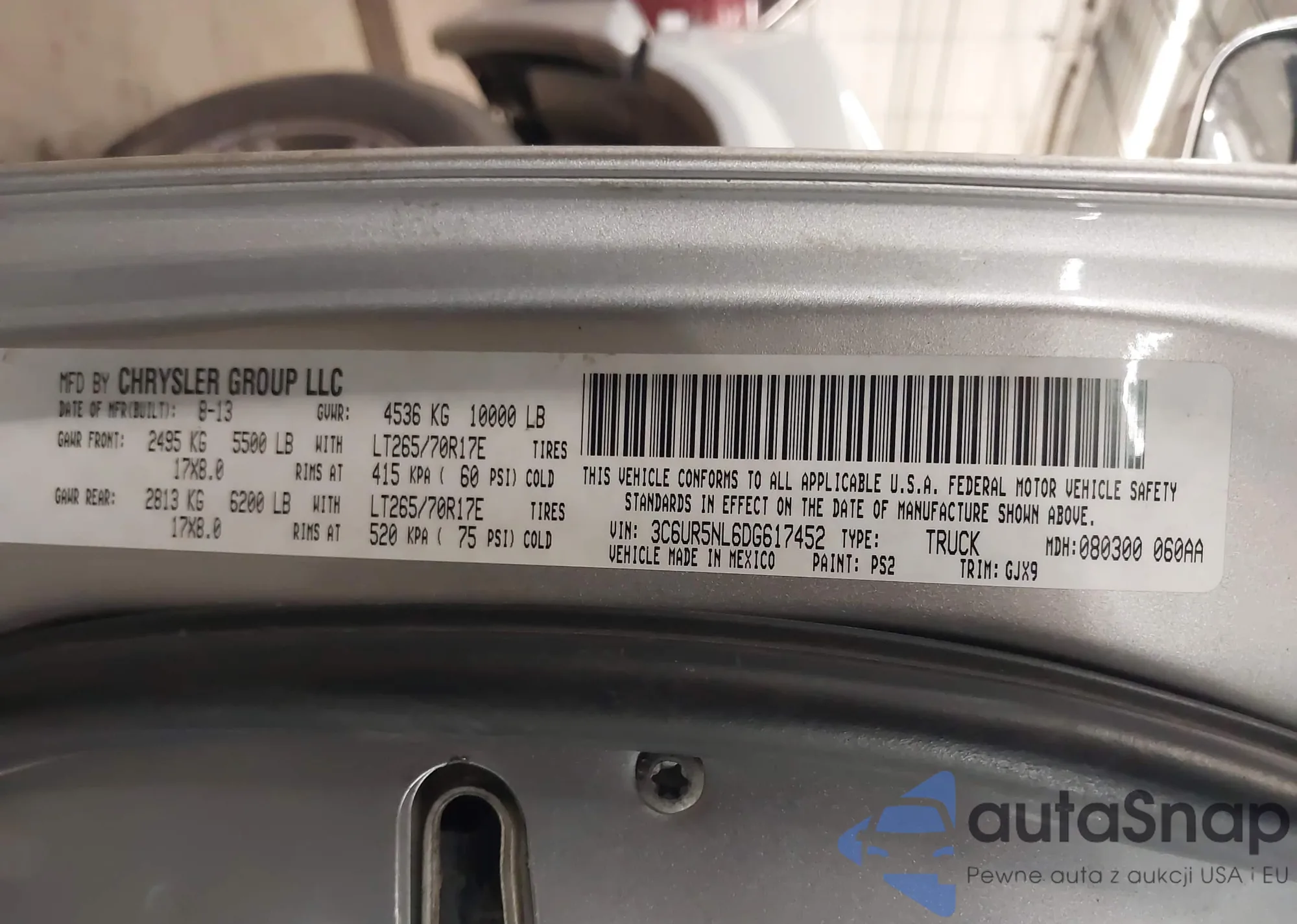 • VIN 3C6TR5EJ4MG637791