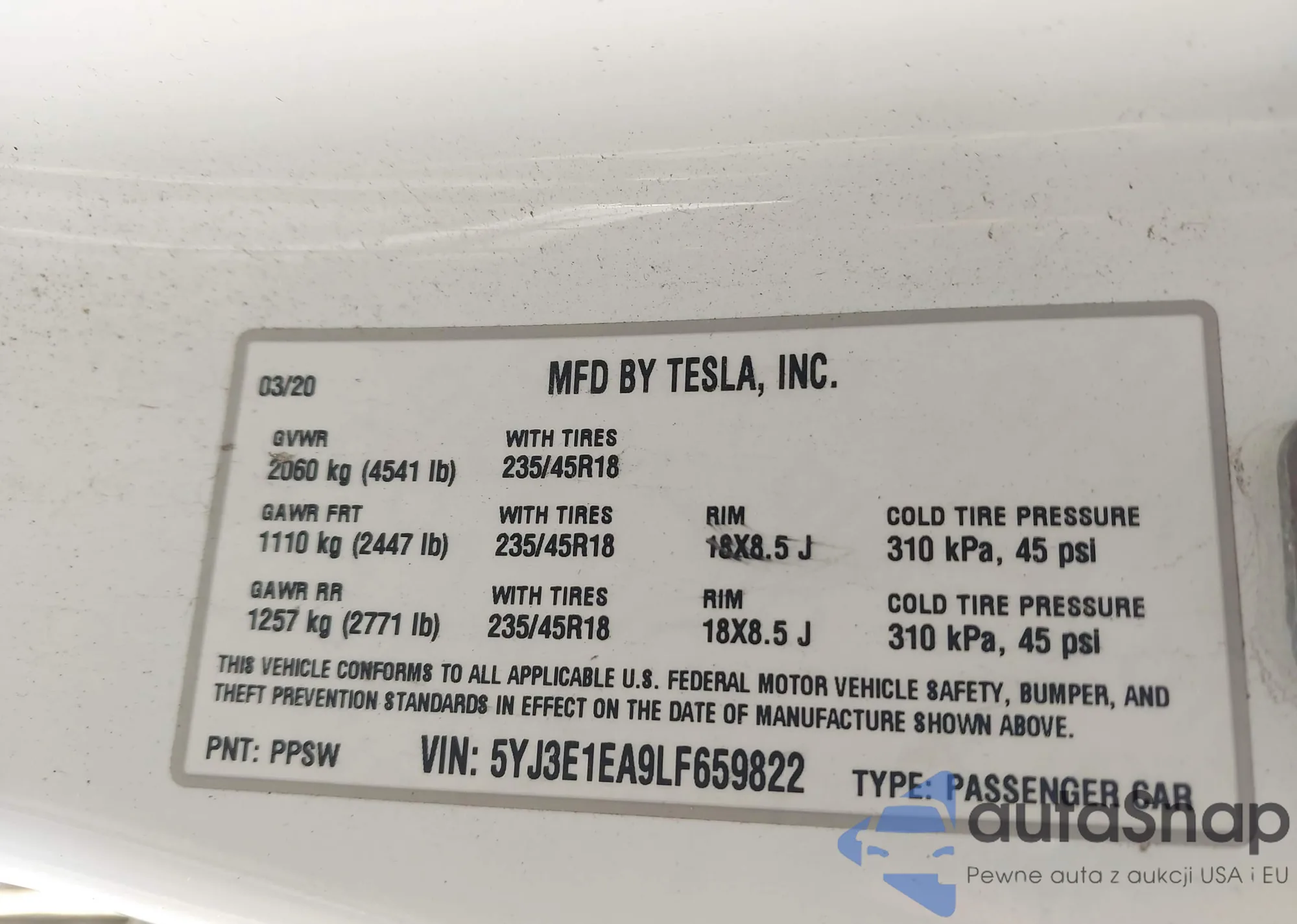 • VIN 5YJ3E1EA9LF659822
