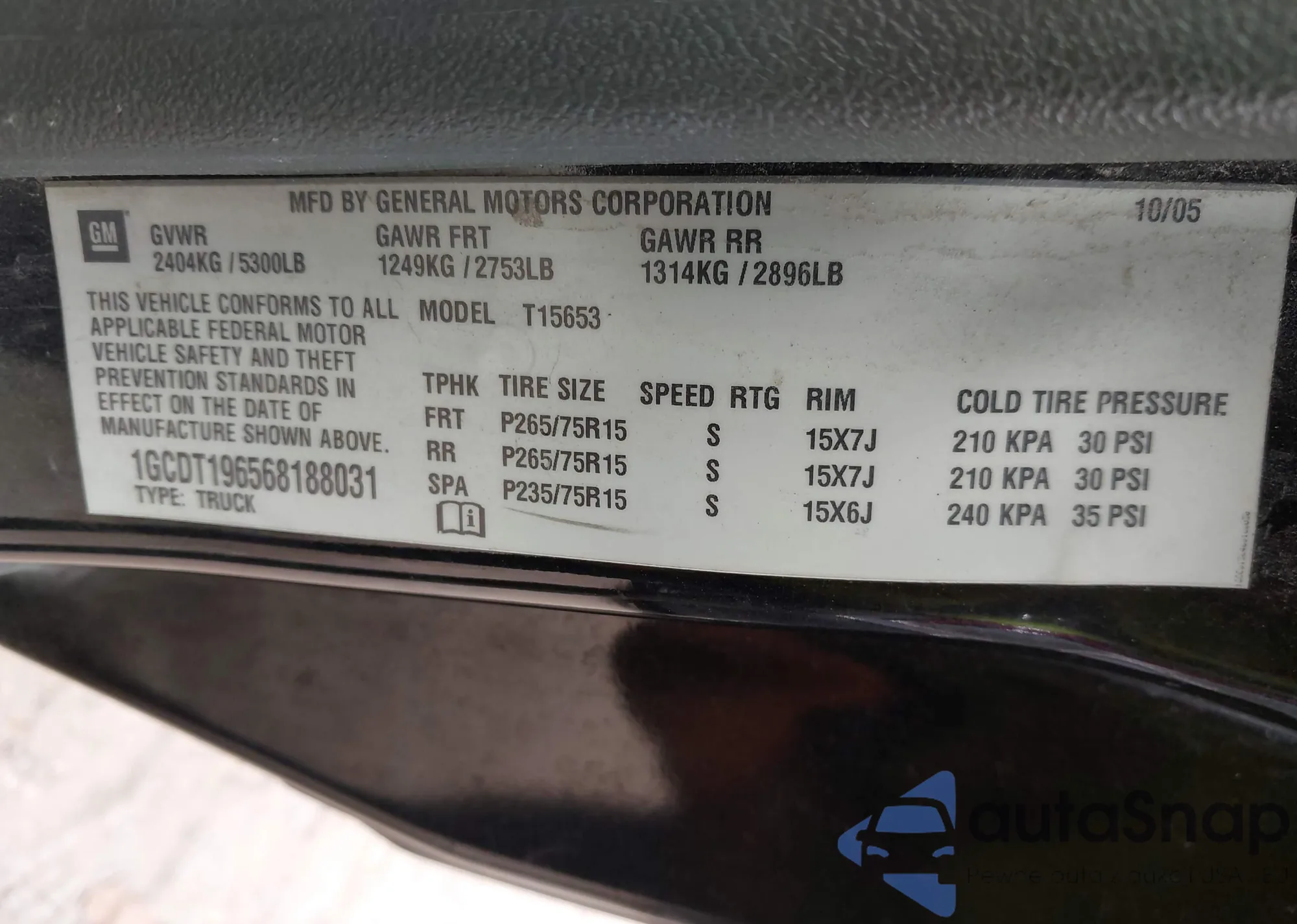 • VIN 1GCDT196568188031