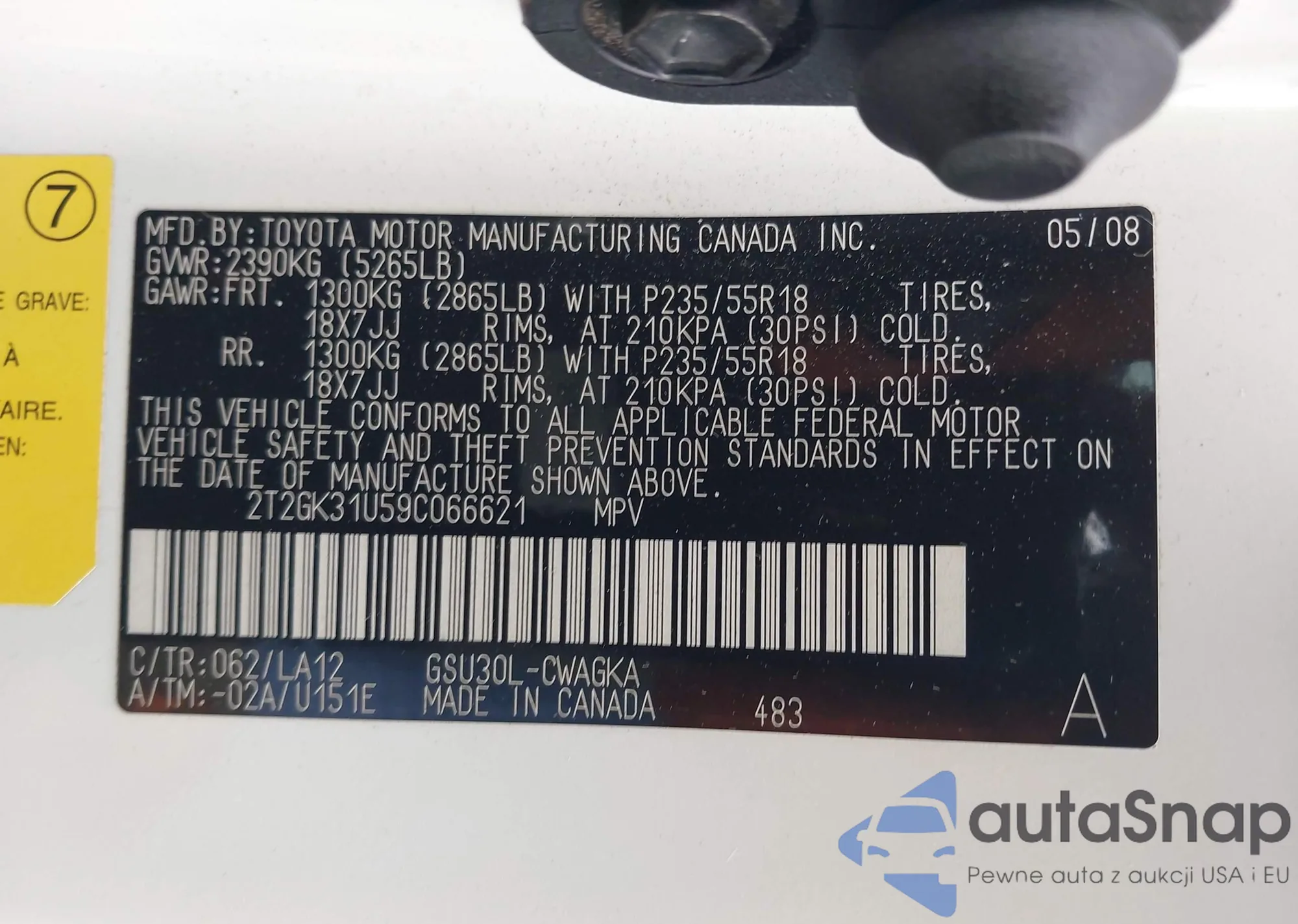 • VIN 2T2GK31U59C066621