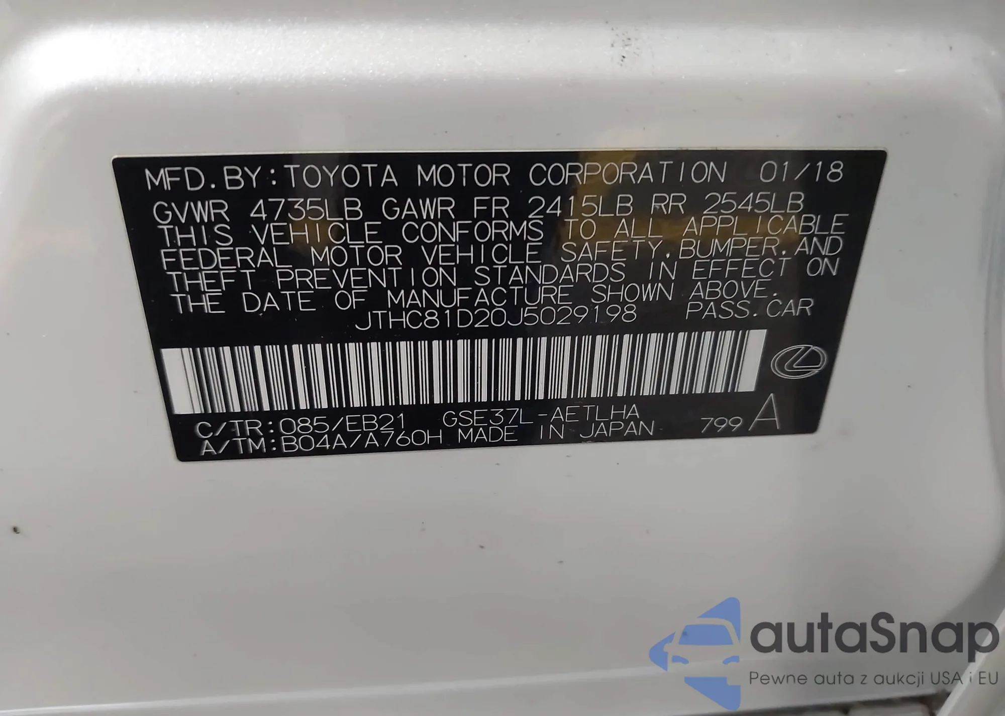 LOT: 43412998 VIN: JF1ZCAC17J9601675