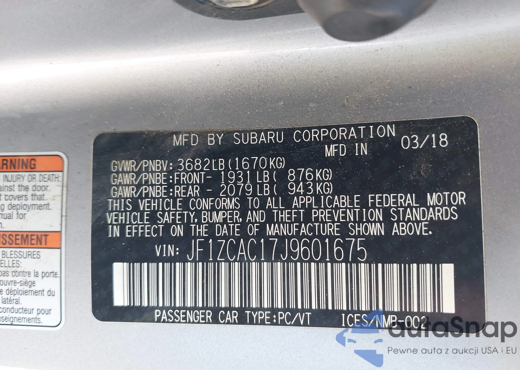 • VIN JF1ZCAC17J9601675