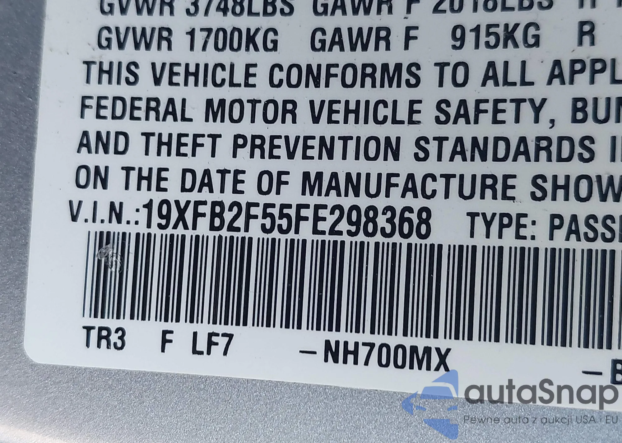• VIN 5FNRL6H72LB059446