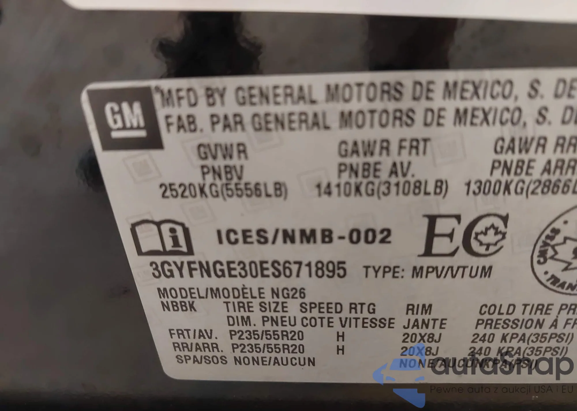 • VIN 3GYFNGE30ES671895