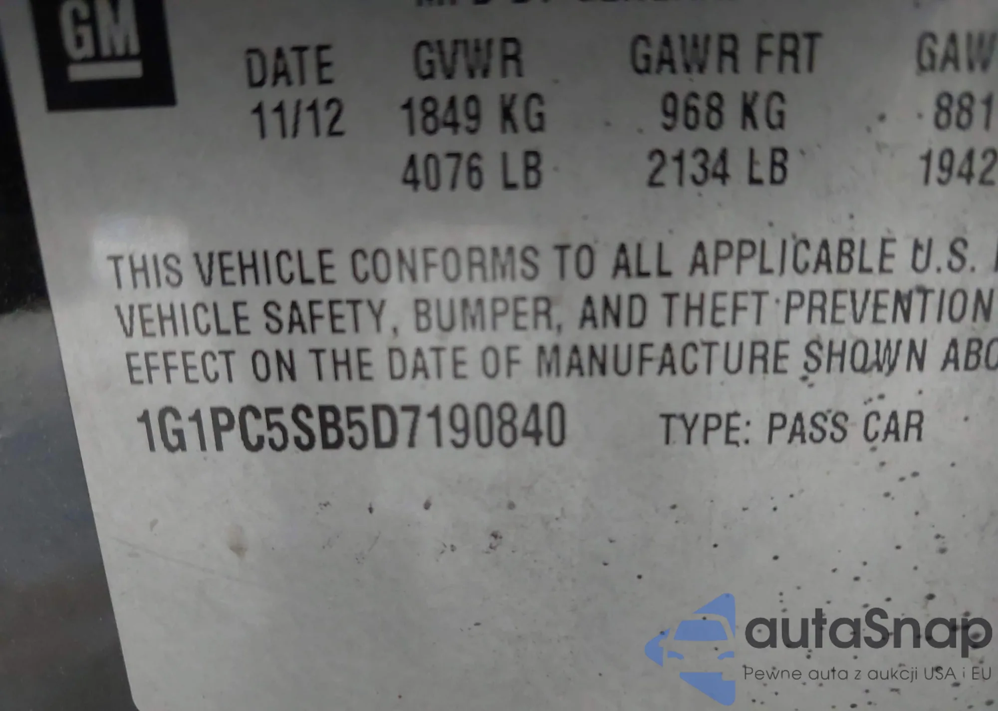 • VIN 1G1ZG5ST8SF112531