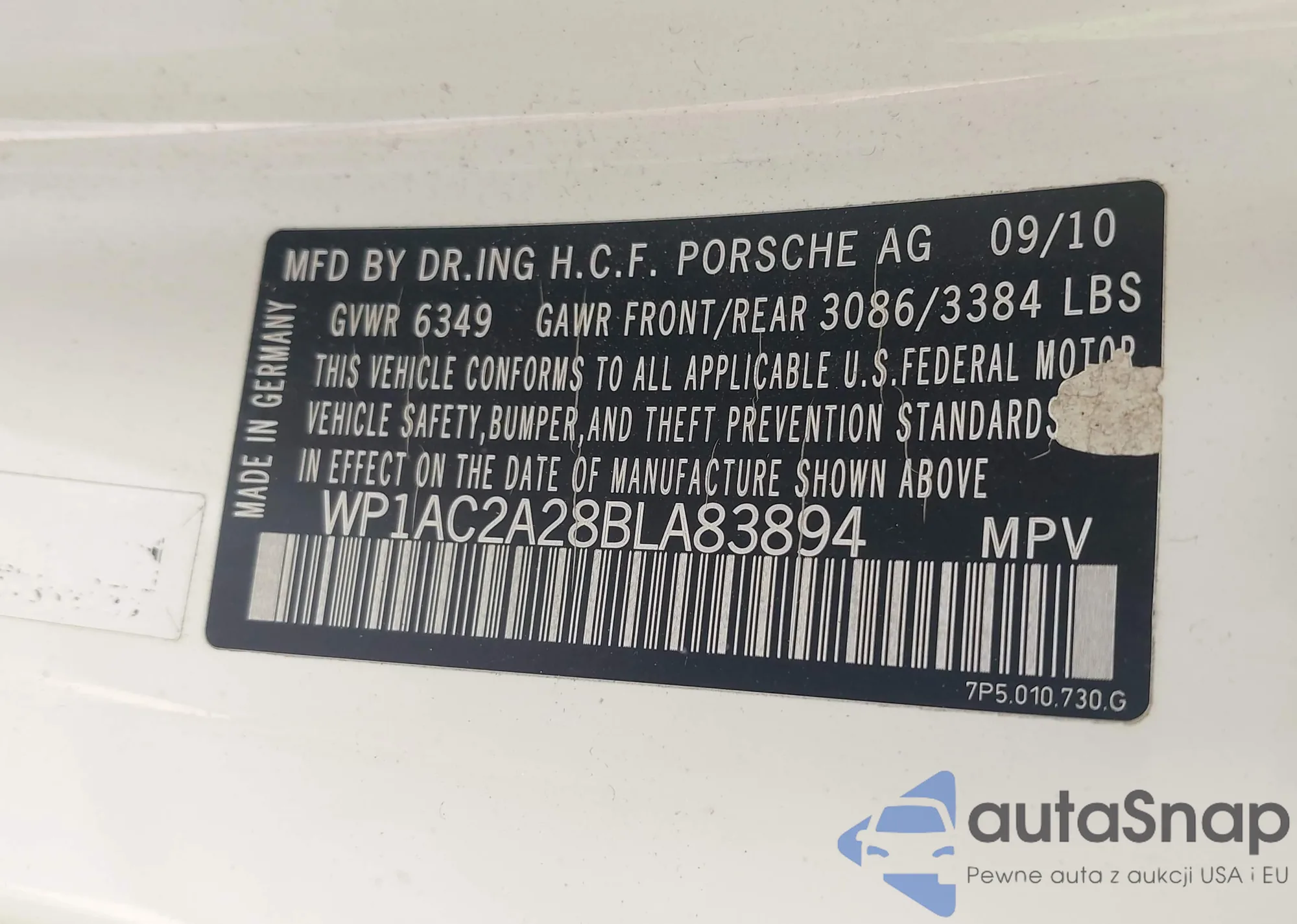 • VIN WP1AC2A28BLA83894