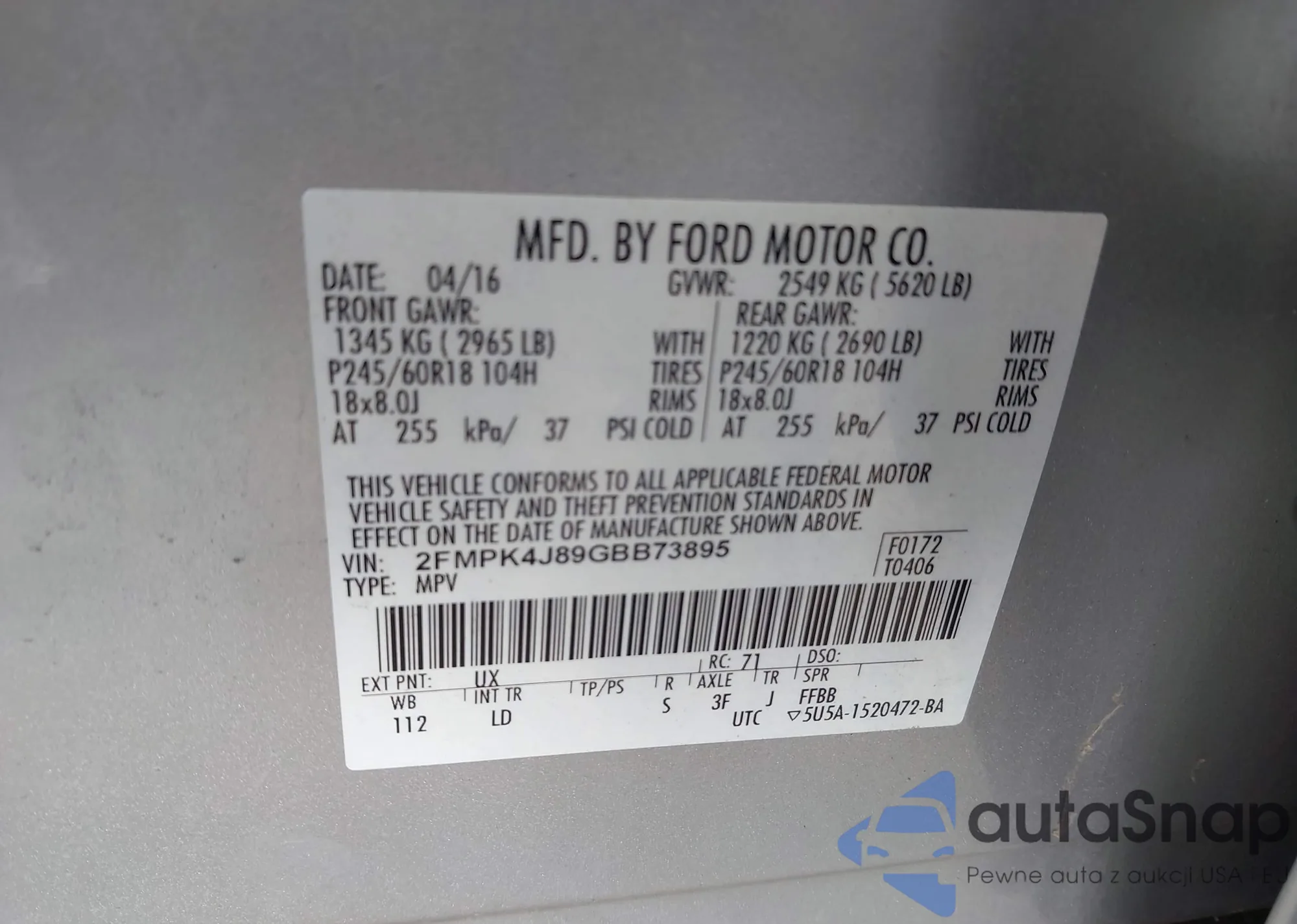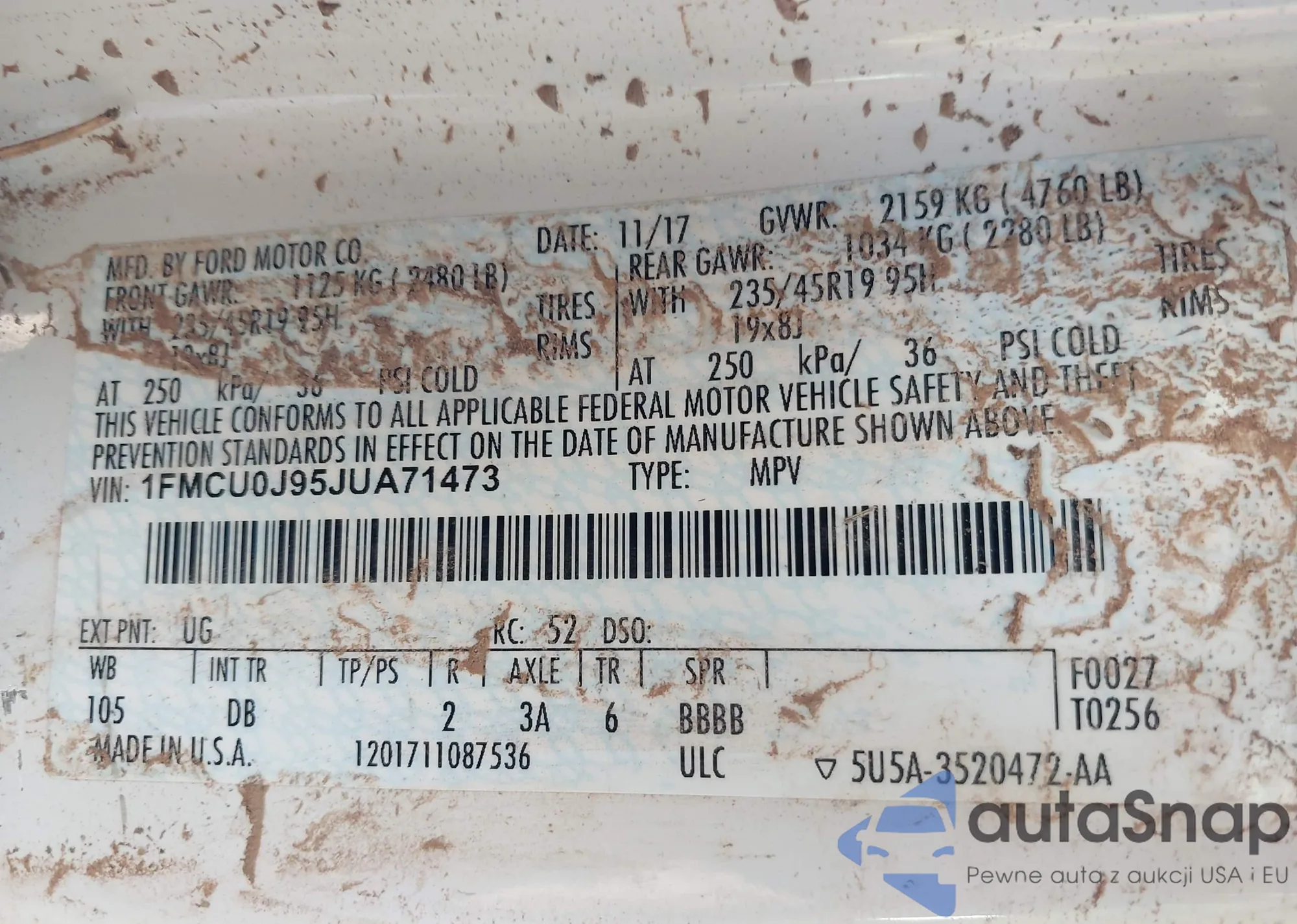 • VIN 1FMCU0J95JUA71473